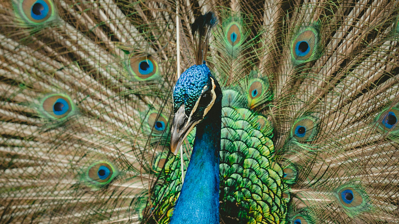 Wallpaper Green and Blue Peacock Spreading Wings