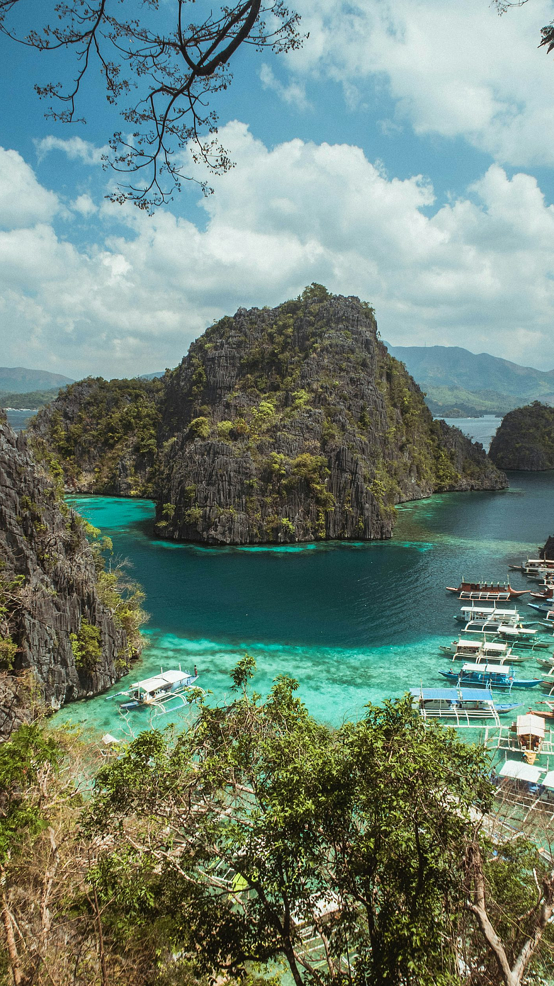 The contrasting colors of the mountains, ranging from lush greens to earthy browns, create a visually appealing landscape. The water reflects the surrounding scenery, adding to the peaceful atmosphere. This wallpaper is perfect for those who appreciate the beauty of unspoiled nature and are seeking a calming and inspiring image for their devices.