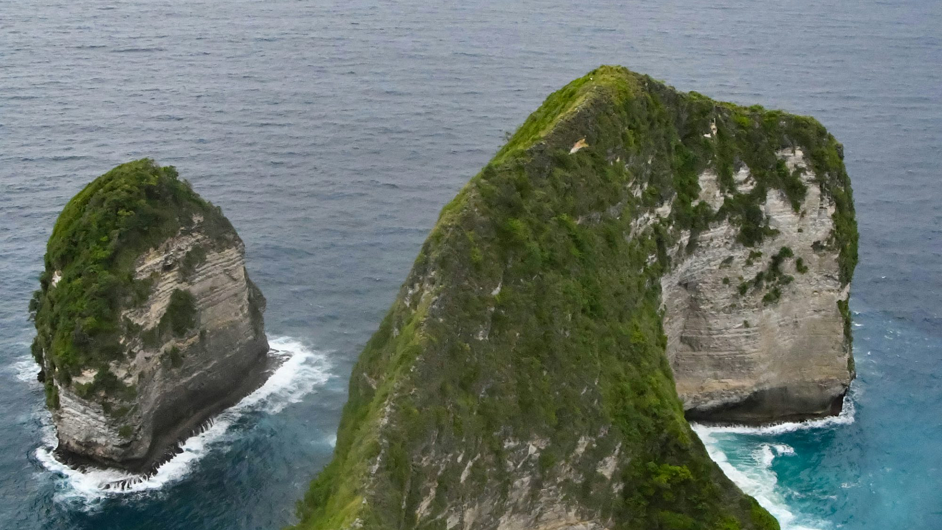Wallpaper Green and Brown Rock Formation on Sea During Daytime