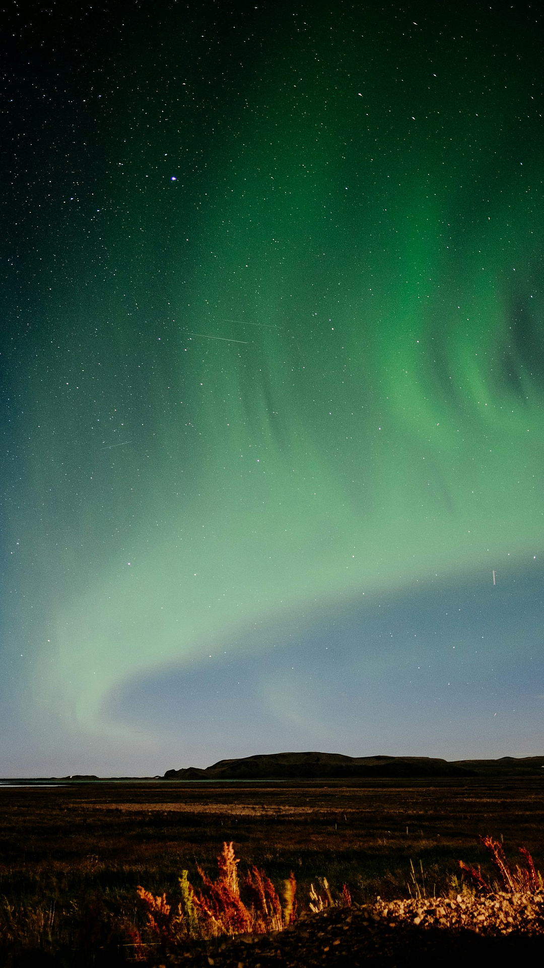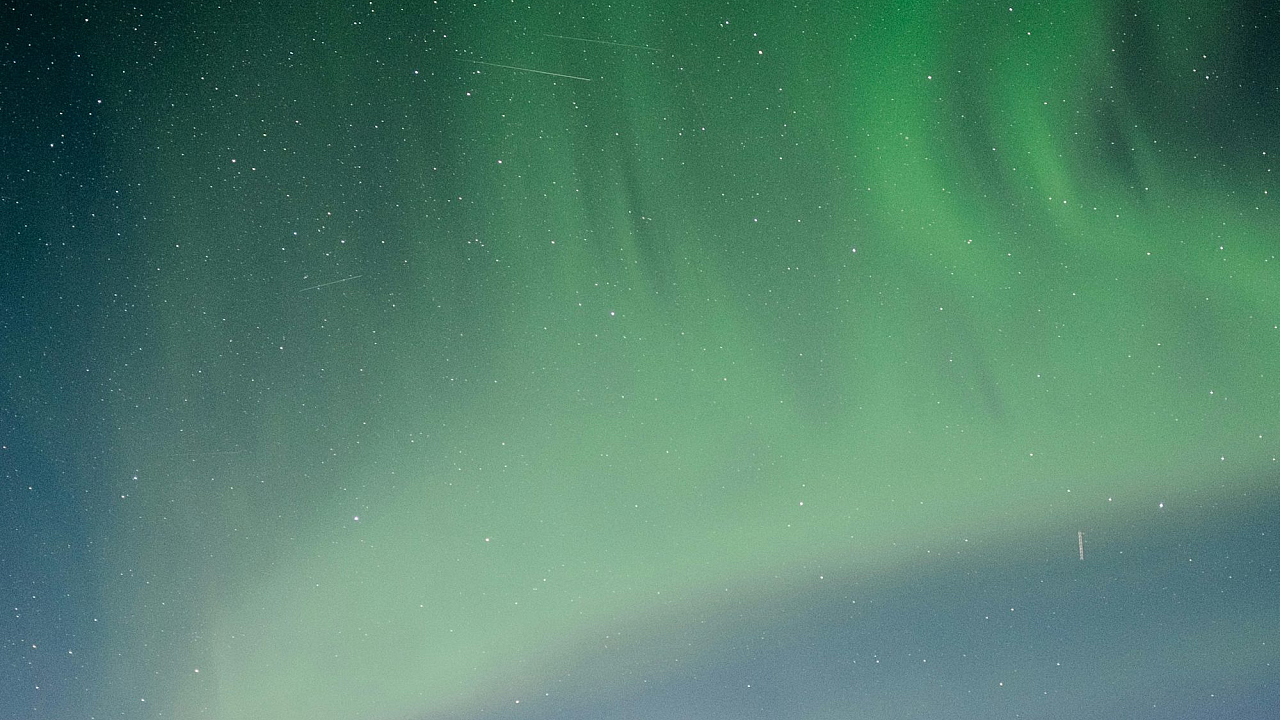 This wallpaper features a stunning green aurora, also known as the aurora borealis or northern lights. The vibrant green hues dance across the night sky, creating a mesmerizing spectacle of nature’s light show. This image is perfect for those seeking a captivating and serene wallpaper for their devices.