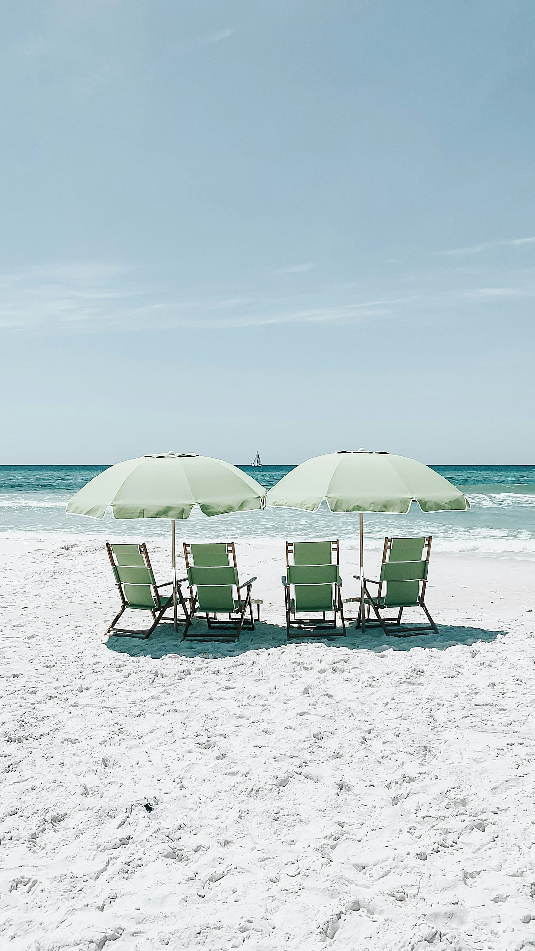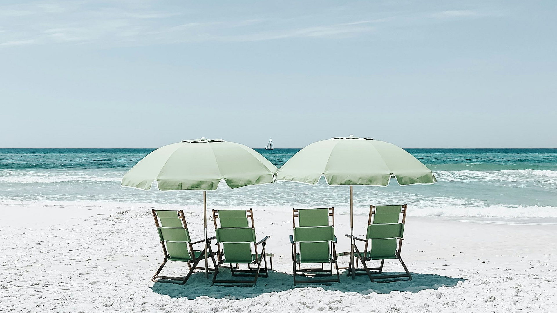 Wallpaper Green Chairs Under Umbrellas on Shore