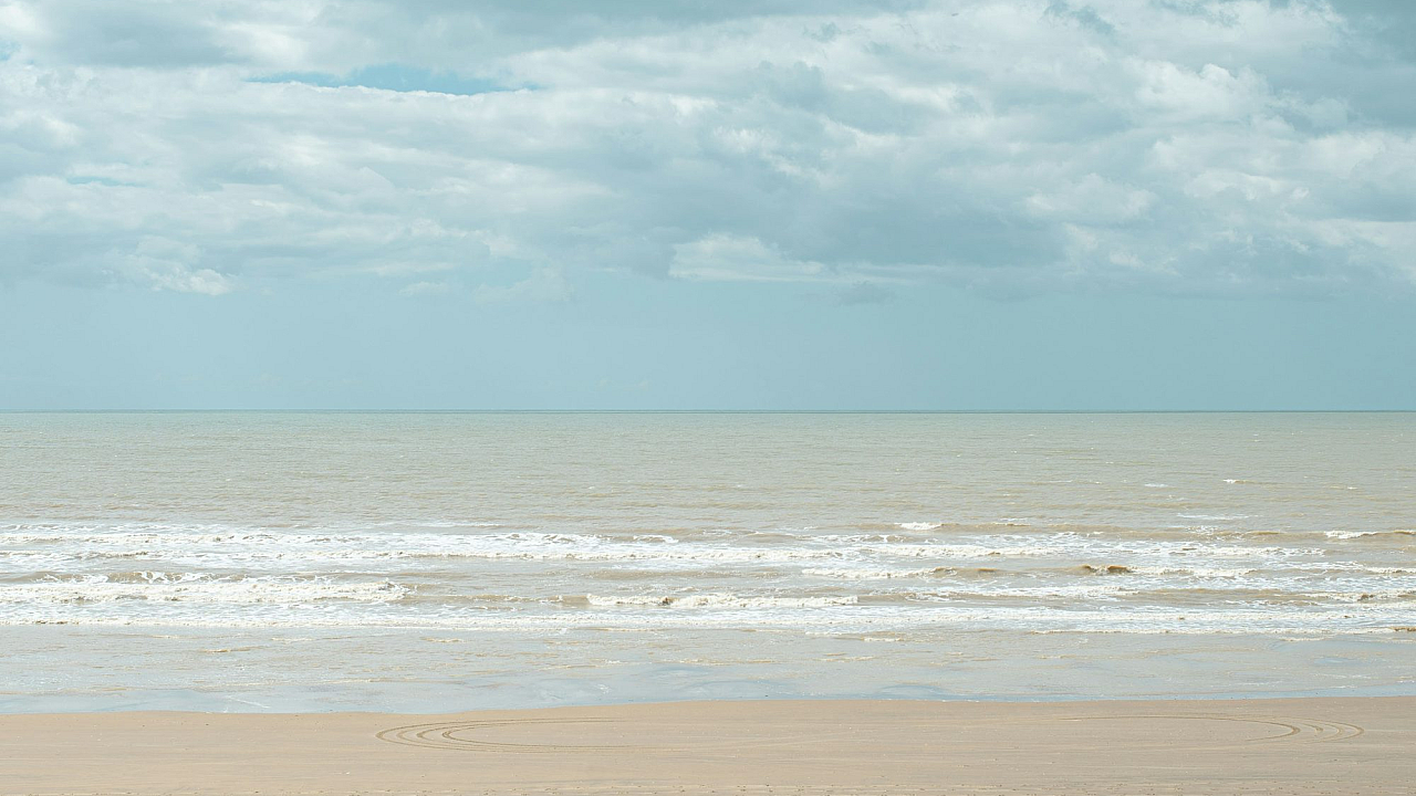 This stunning wallpaper showcases a vibrant scene of green grass growing surprisingly close to the beach shore. The cloudy sky casts a soft, diffused light across the landscape, creating a tranquil and peaceful atmosphere. The contrast between the lush green grass and the sandy beach is visually striking, offering a unique and captivating image perfect for your desktop or mobile background.