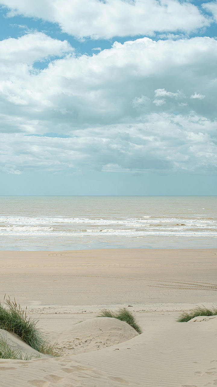 The detail in the grass, the texture of the sand, and the subtle variations in the clouds all contribute to the realism and visual appeal of this wallpaper. Whether you prefer a calming or simply beautiful backdrop, this image offers a serene escape to the seaside. This image is ideal for individuals seeking a peaceful and refreshing atmosphere for their digital devices. The contrast between the vibrant green and the muted tones of the sky creates a balanced and pleasing visual effect.
