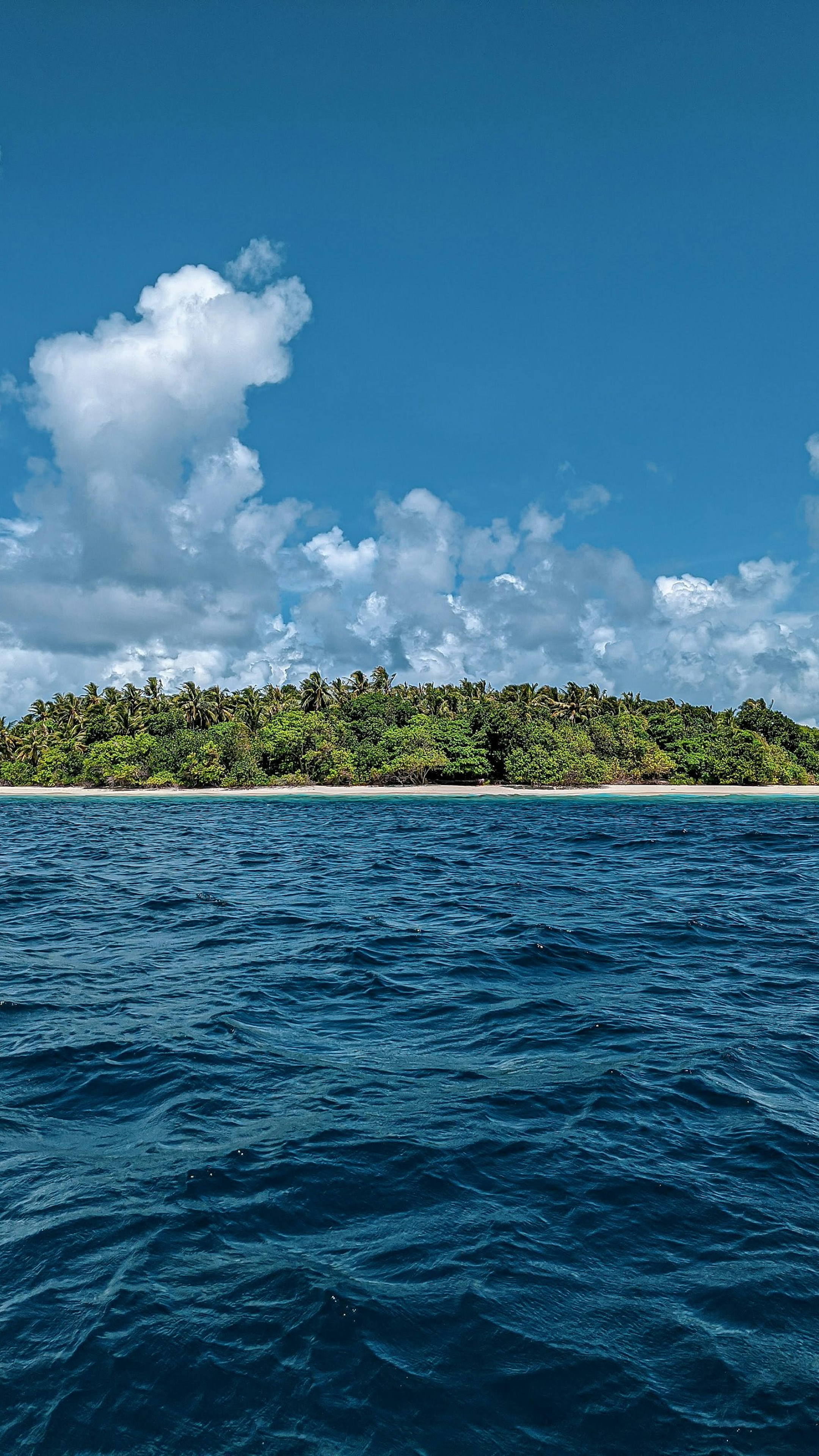 green island surrounded by blue sea under blue and white cloudy sky during daytime