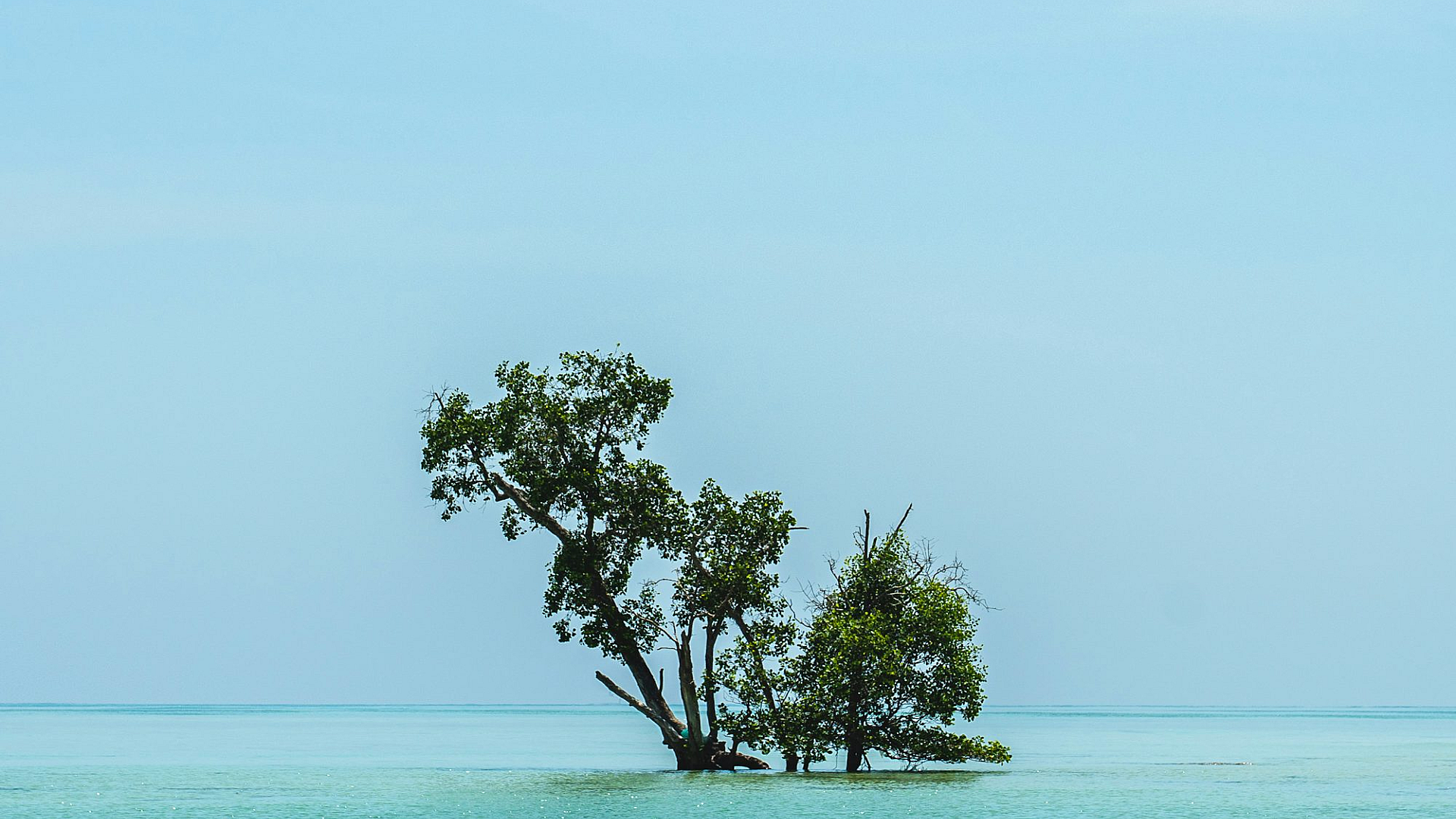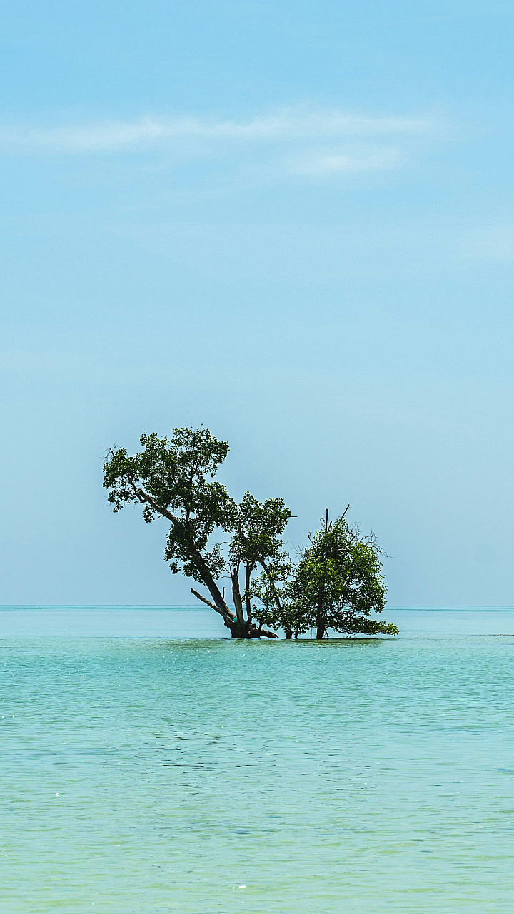 green tree, sea, ocean, daytime, nature, landscape, scenery, water, coast, shoreline, tropical, island, tree on the beach, seascape, summer