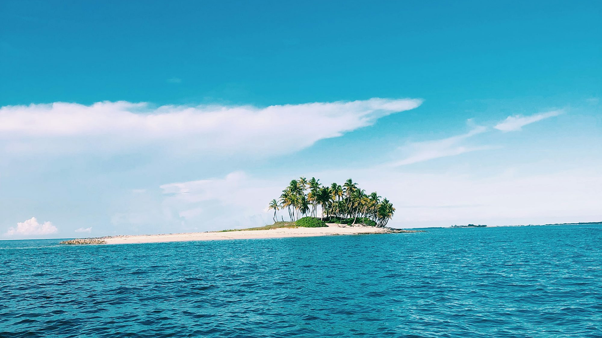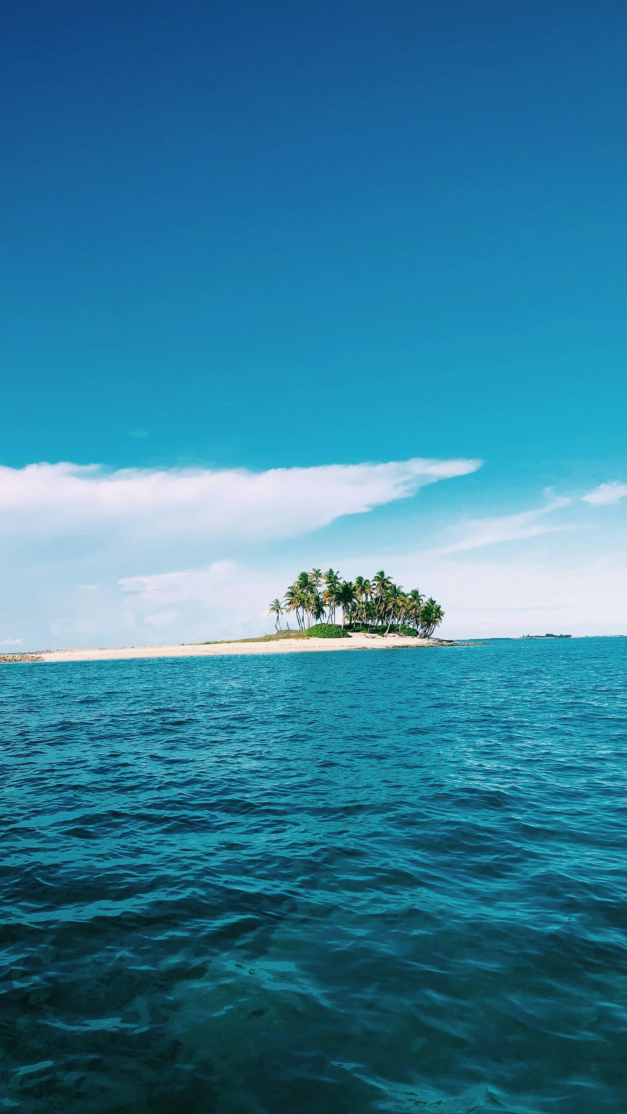 Keywords: green trees, island, sea, ocean, water, blue sky, daytime, nature, landscape, scenery, tropical, paradise, tranquility, serenity, wallpaper