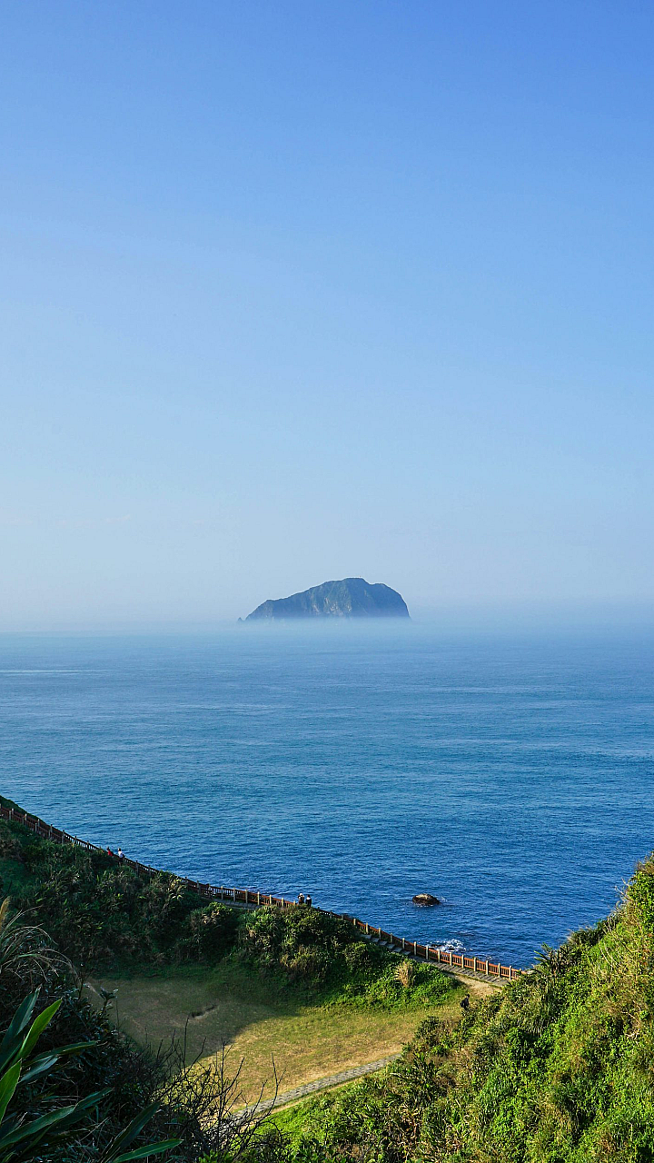 The image is rich in detail, capturing the texture of the foliage, the rolling hills, and the vast expanse of the ocean. The contrast between the deep green of the trees and the blue of the water creates a visually striking effect. This wallpaper is ideal for those who appreciate the beauty of the natural environment and seek a calming and inspiring image for their screens.