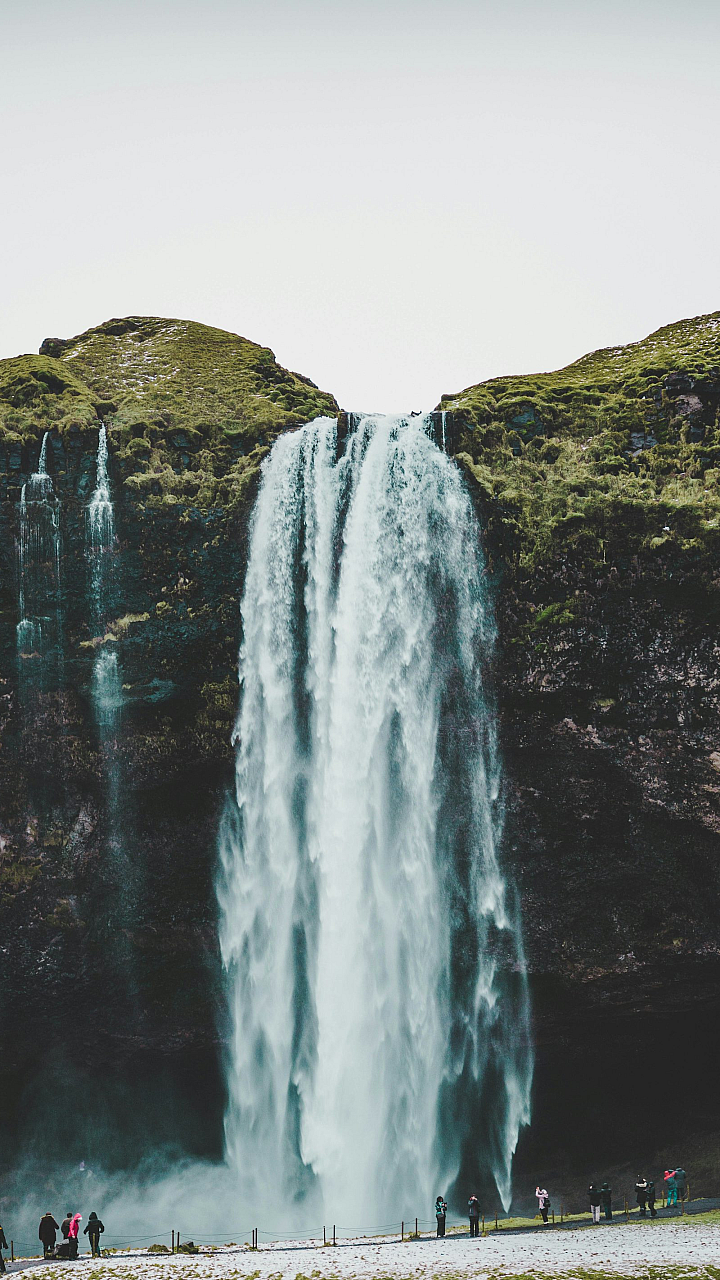 Waterfall, People, Nature, Landscape, Scenery, Group, Standing, Water, Cascading Water, Adventure, Travel, Exploration, Outdoors, Humans, Serenity