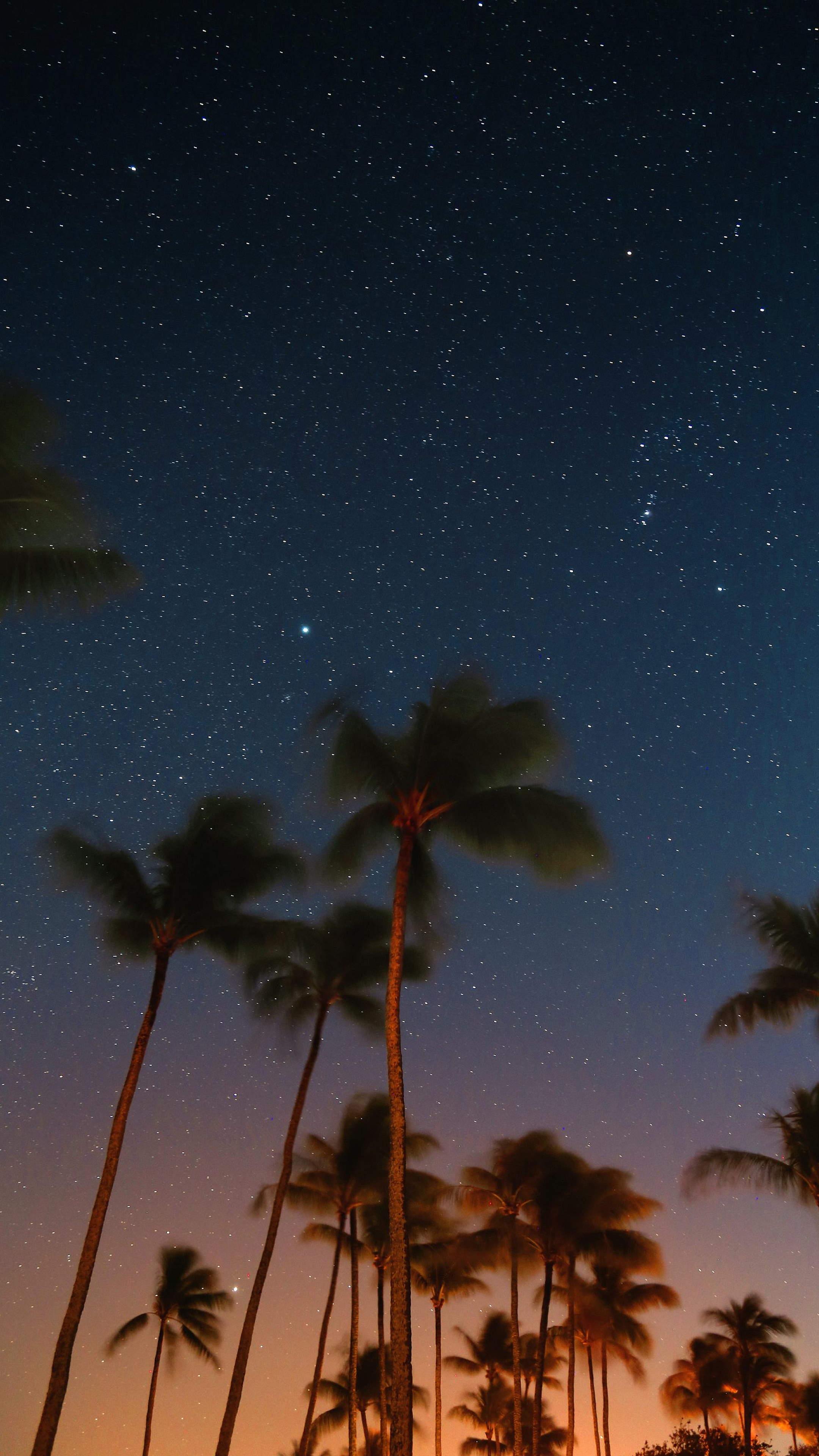 Keywords: coconut trees, nighttime, night, low angle, low angle shot, upward shot, tropical, tropics, palm trees, palms, night photography, darkness, shadows, silhouette, coconut palm, tropical night