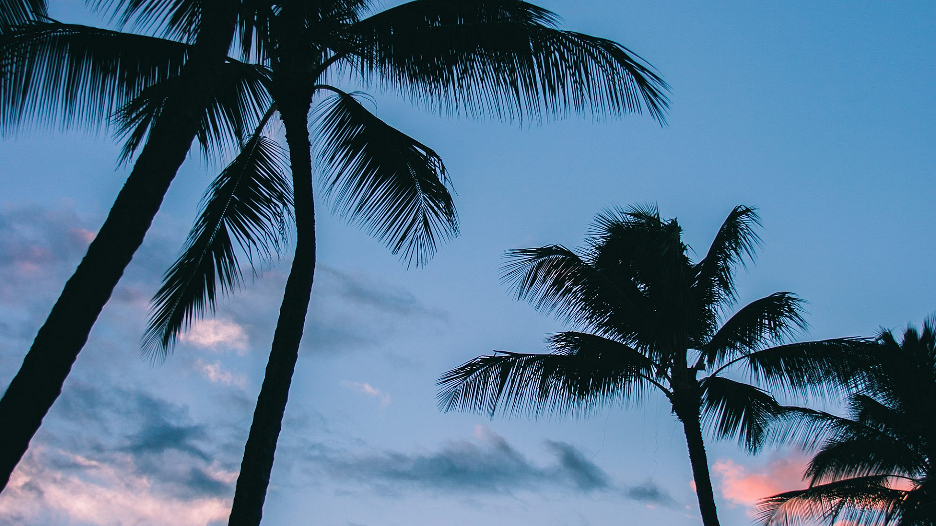 This stunning wallpaper features a low angle shot of majestic coconut trees. The perspective emphasizes the height and grandeur of these iconic tropical plants, creating a sense of awe and wonder. The image is perfect for anyone who loves tropical landscapes, summer vacations, or simply wants to bring a touch of paradise to their desktop or mobile device.