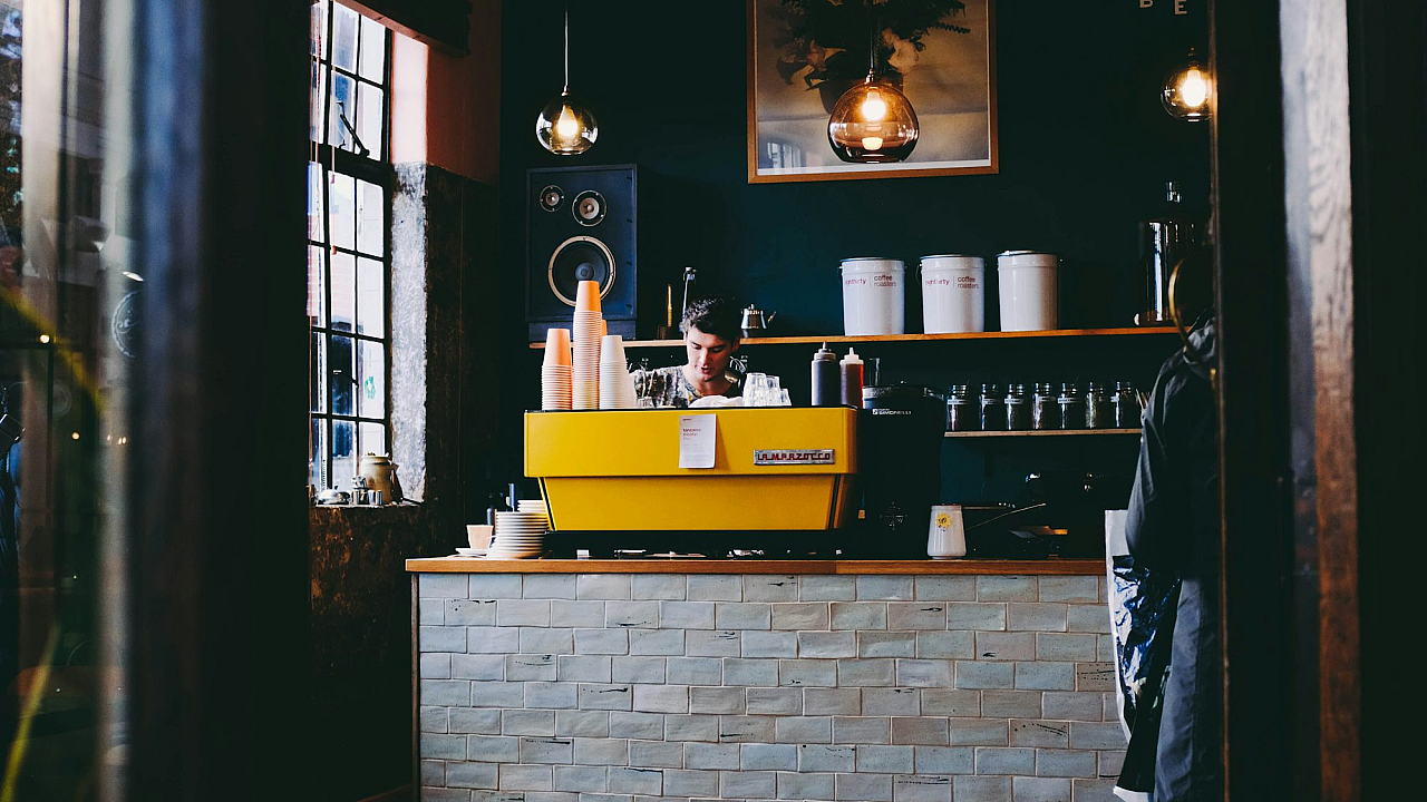 man, yellow table, table, yellow, sitting, standing, indoor, male, person, furniture, golden, sitting man, man at table, person at table, yellow furniture