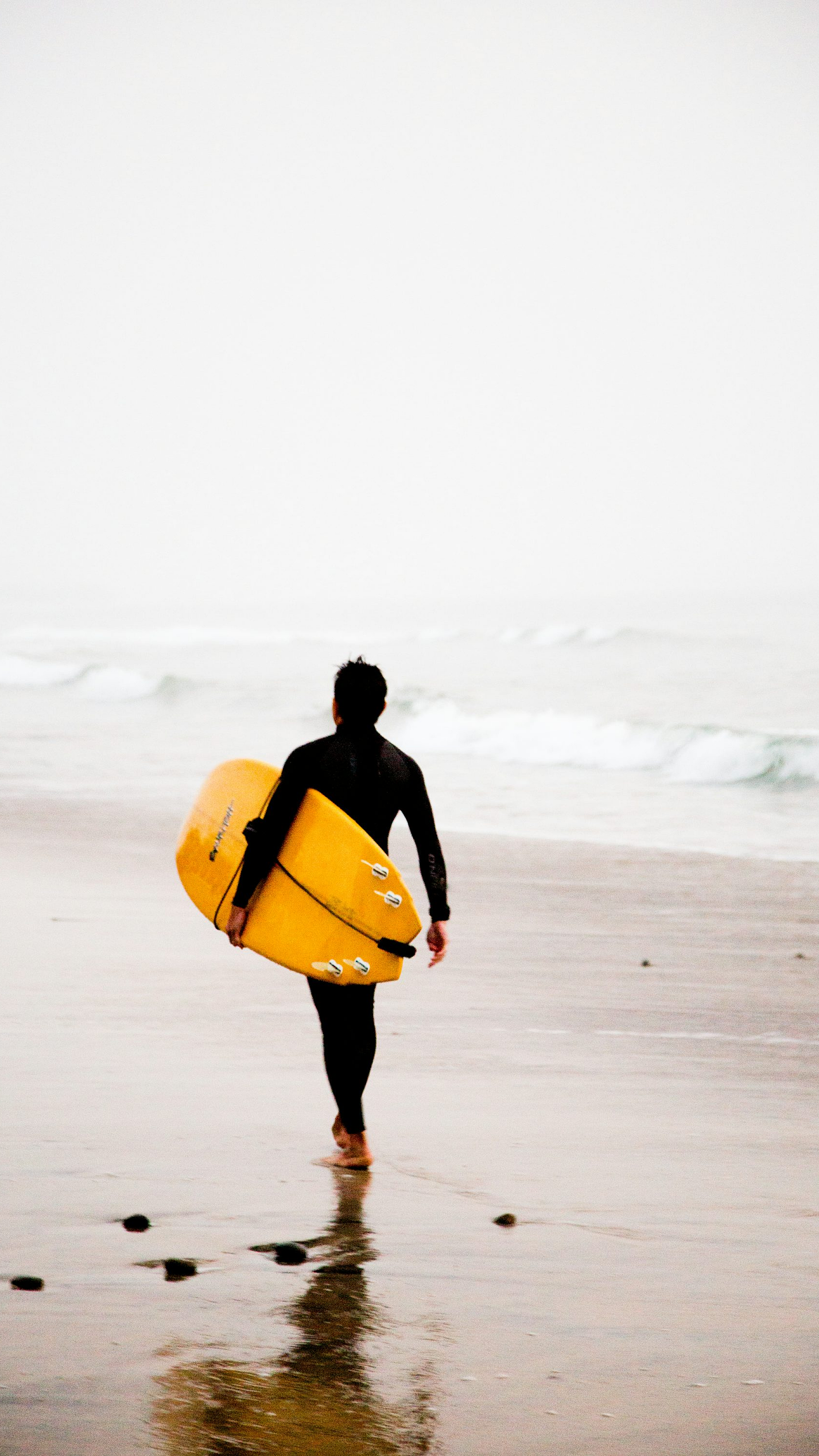 This stunning wallpaper depicts a man confidently holding a vibrant yellow surfboard as he strolls along the seashore during a beautiful daytime. The scene exudes a sense of serenity and freedom, capturing the essence of summer and coastal living. The warm sunlight illuminates the scene, highlighting the rich colors of the sand and the sparkling ocean. The image evokes a feeling of relaxation and adventure, perfect for anyone who loves the beach, surfing, or simply enjoys the beauty of nature. The composition is well-balanced, drawing the viewer’s eye to the man and his surfboard, creating a visually appealing and captivating image ideal for a desktop or mobile wallpaper.