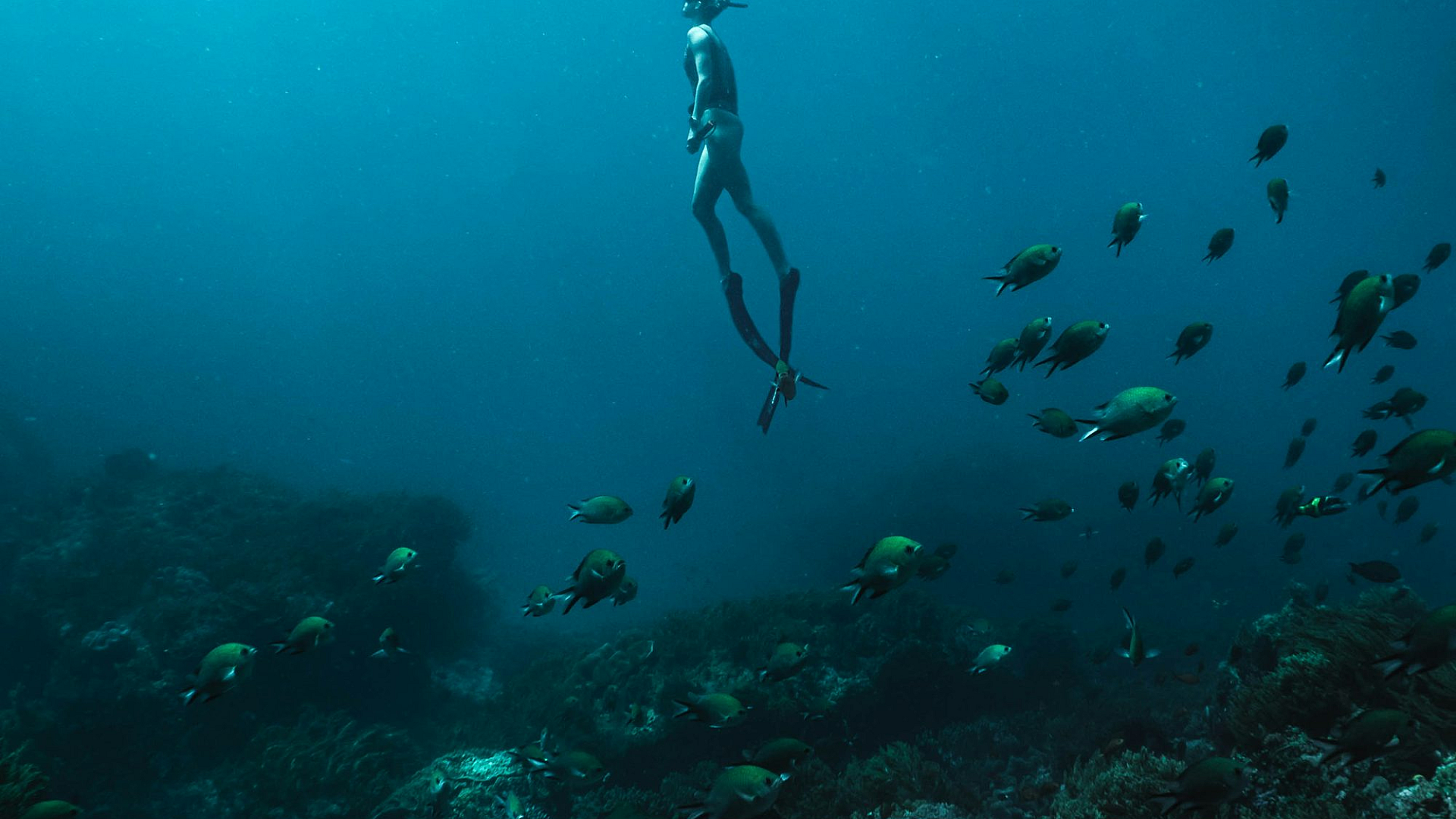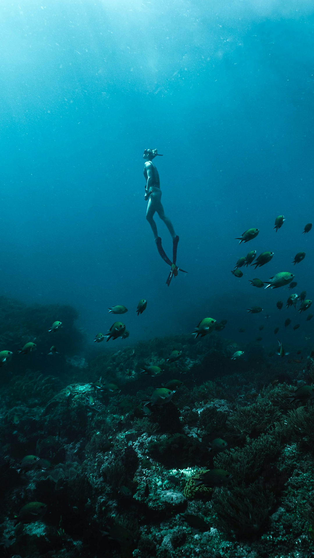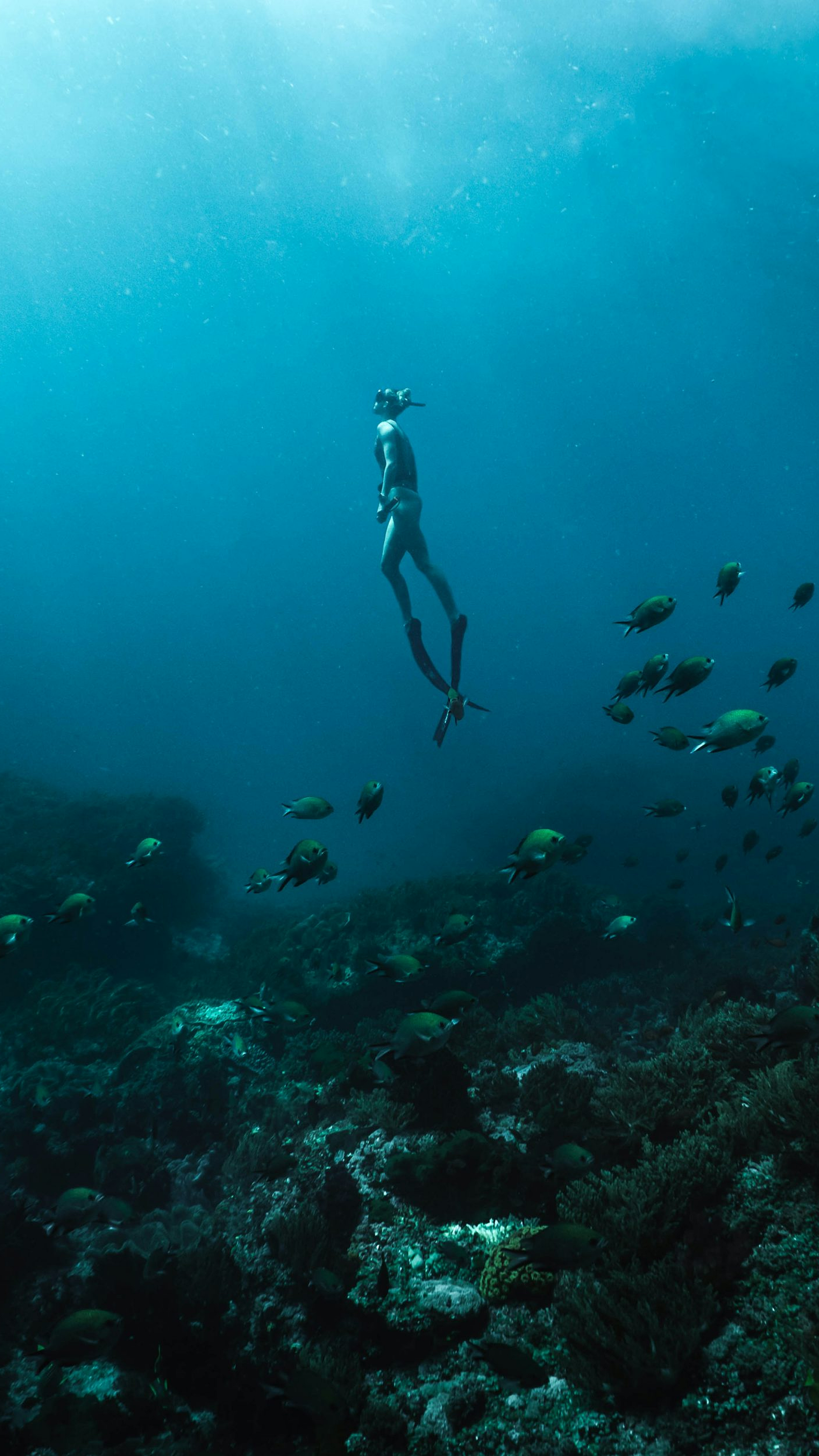 Keywords: man, diving, water, black shorts, swimming, jump, plunge, splash, underwater, summer, ocean, pool, action, sport, activity