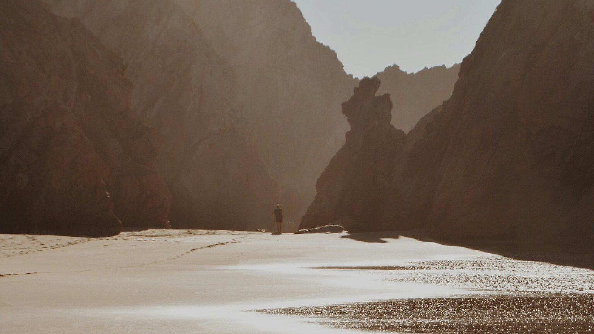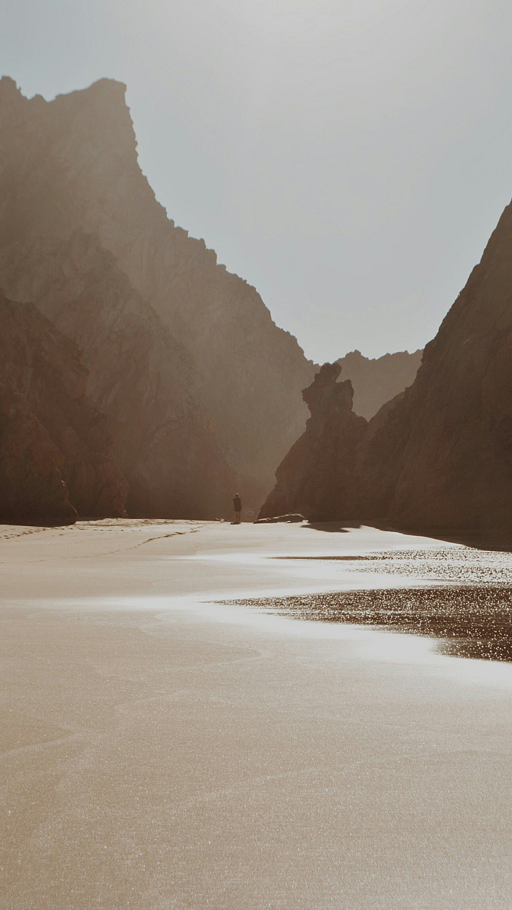 man, walking, shore, beach, coast, seaside, ocean, sea, water, sand, waves, walking on beach, coastal scene, seascape, solitary figure