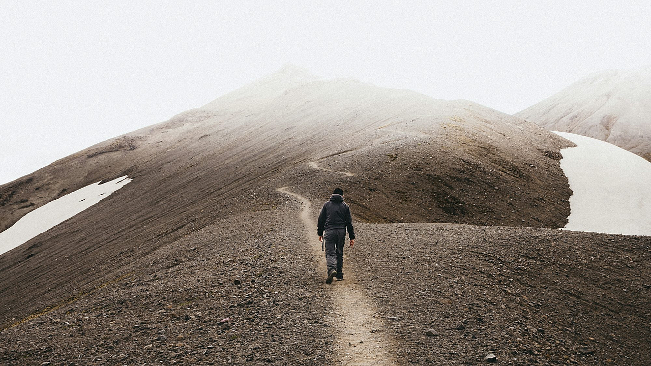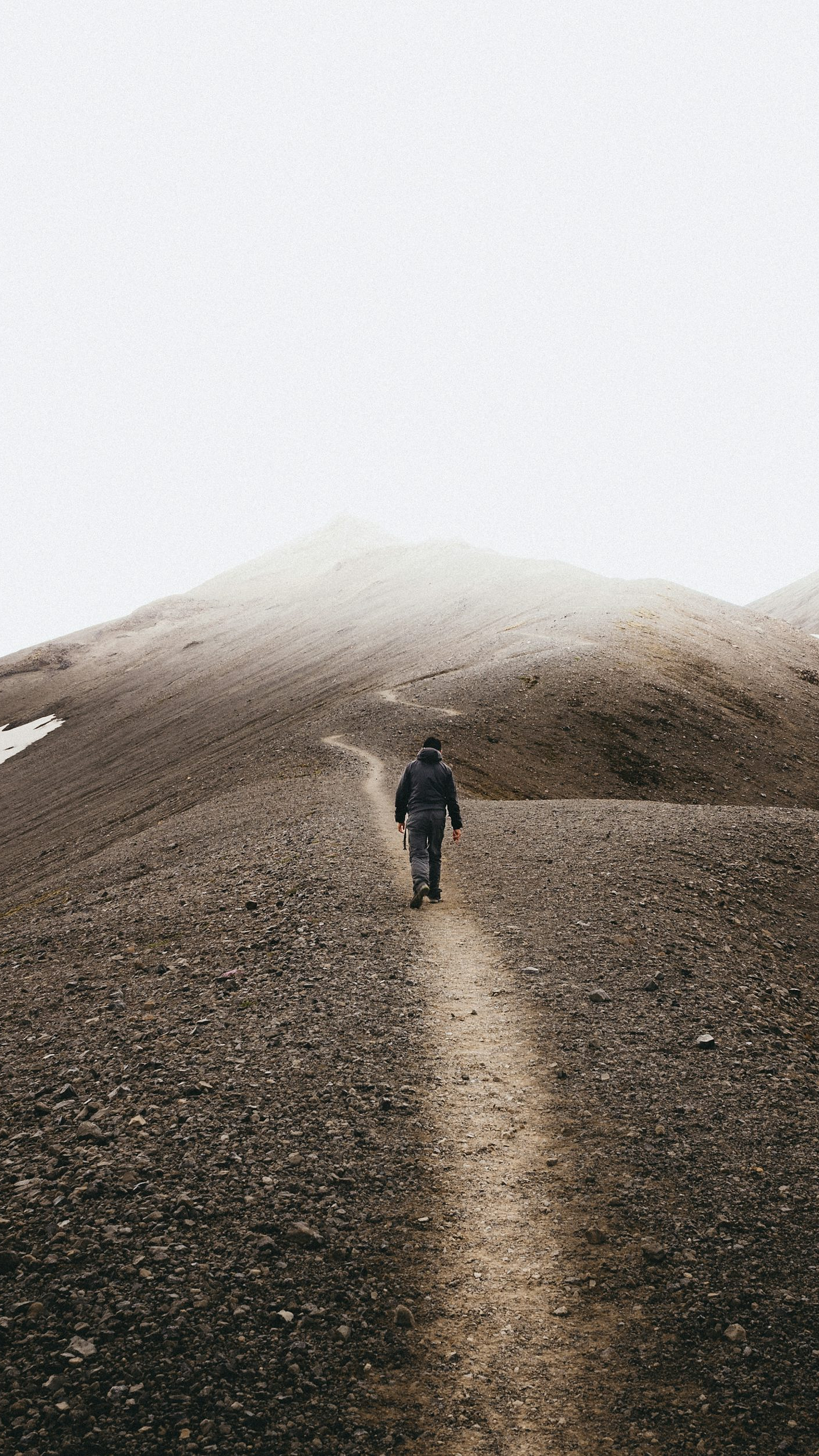 man walking on mountain, mountain hiker, hiking, mountaineering, climber, trekking, landscape, nature, outdoors, adventure, scenic, summit, peak, wilderness, trail, mountain scenery, person hiking, solo hiker, alpine scenery