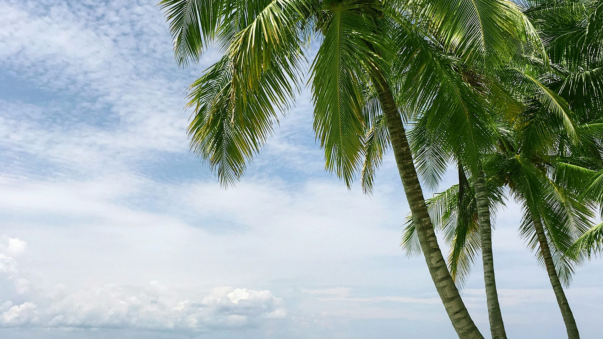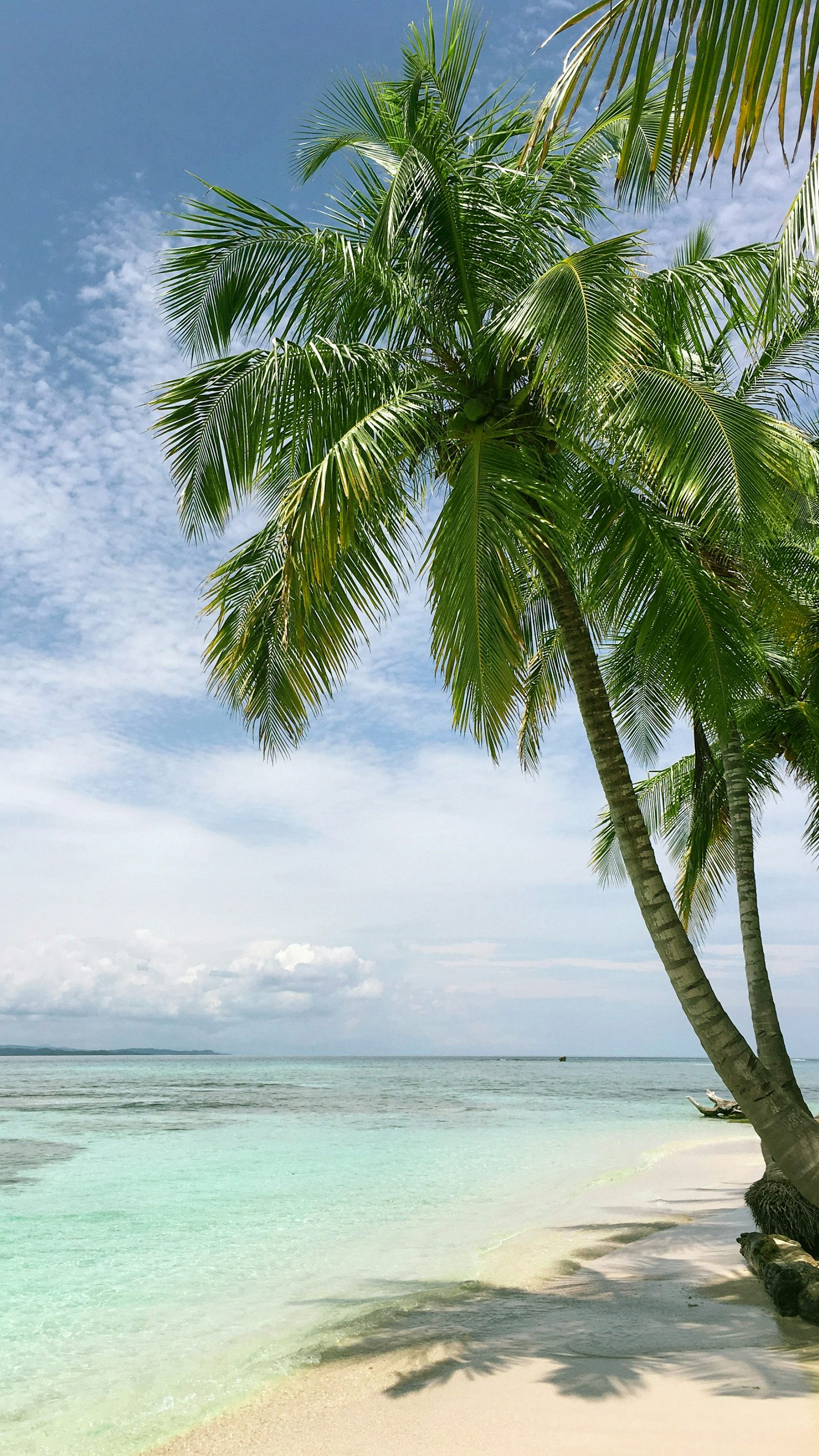 palm tree, seashore, beach, ocean, sea, coast, tropical, summer, vacation, paradise, sunset, sand, water, palm leaves, coastal