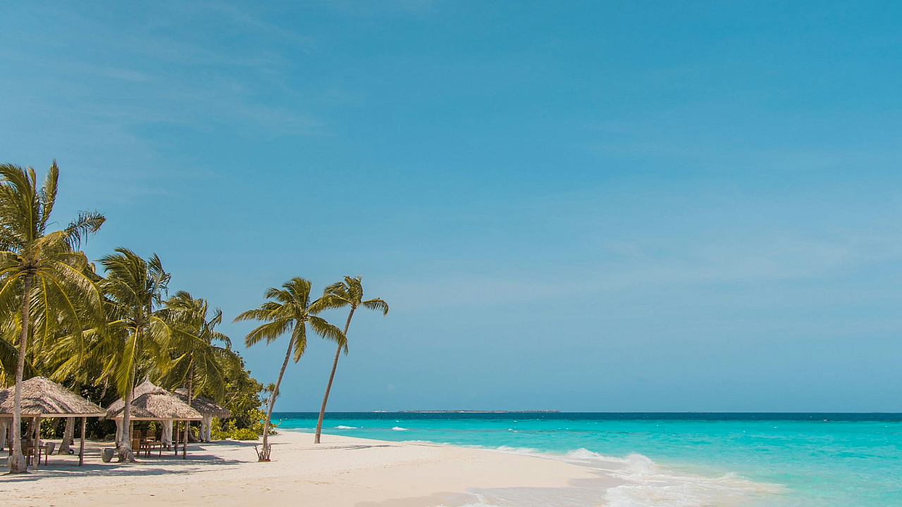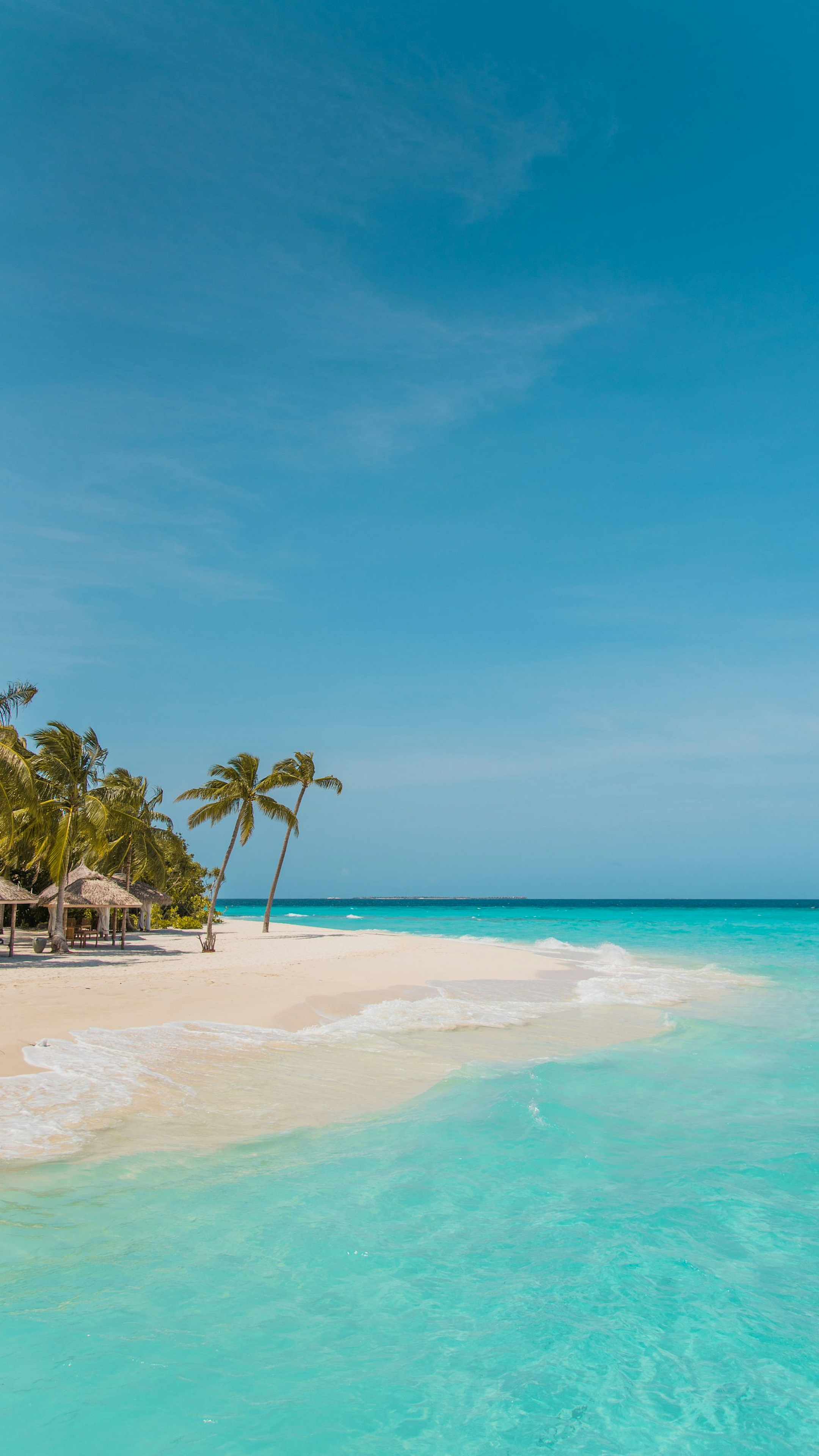 palm trees, beach, shore, daytime, ocean, sea, coast, sand, tropical, summer, vacation, paradise, holiday, sunshine, relaxation