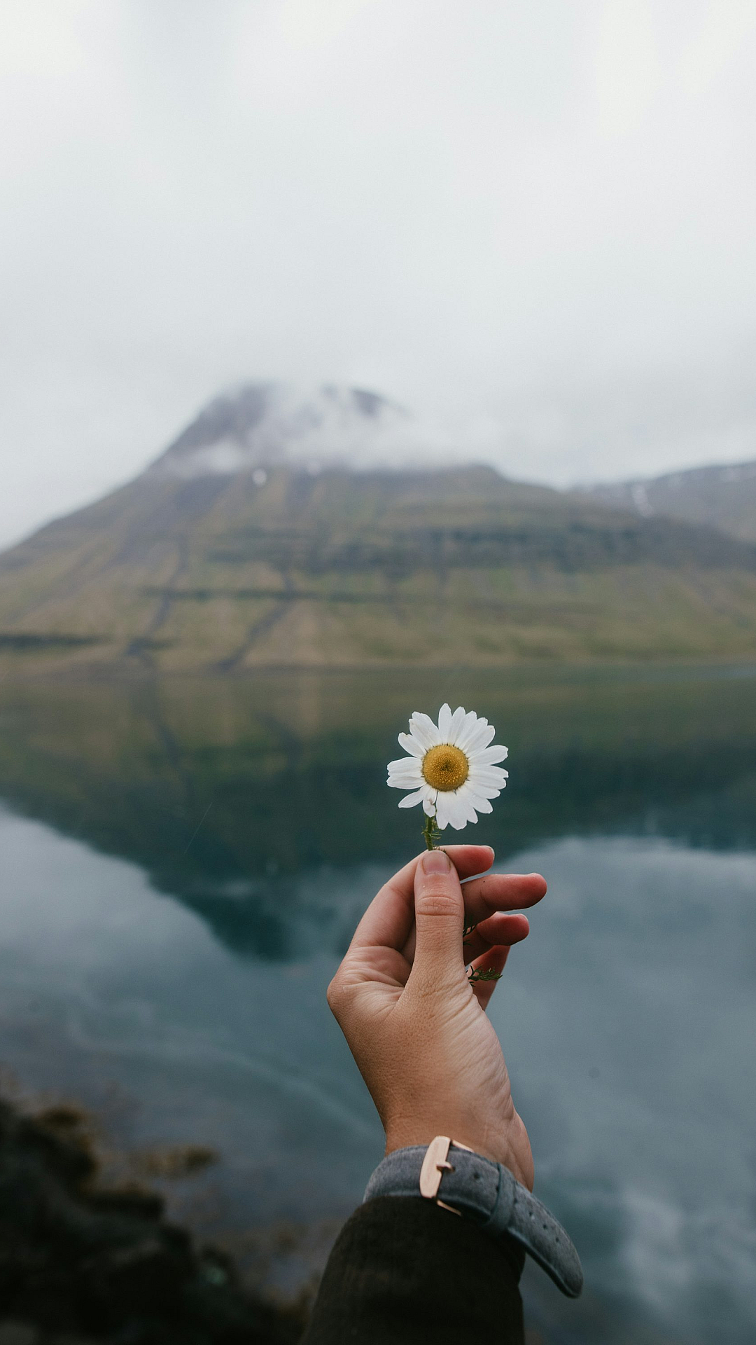 Consider using this wallpaper as a reminder of the simple joys in life, represented by the delicate beauty of the white daisy flower in the person’s hand. The image is versatile, suitable for various screen sizes and devices.