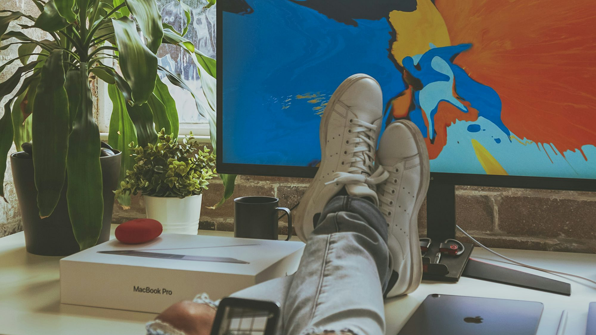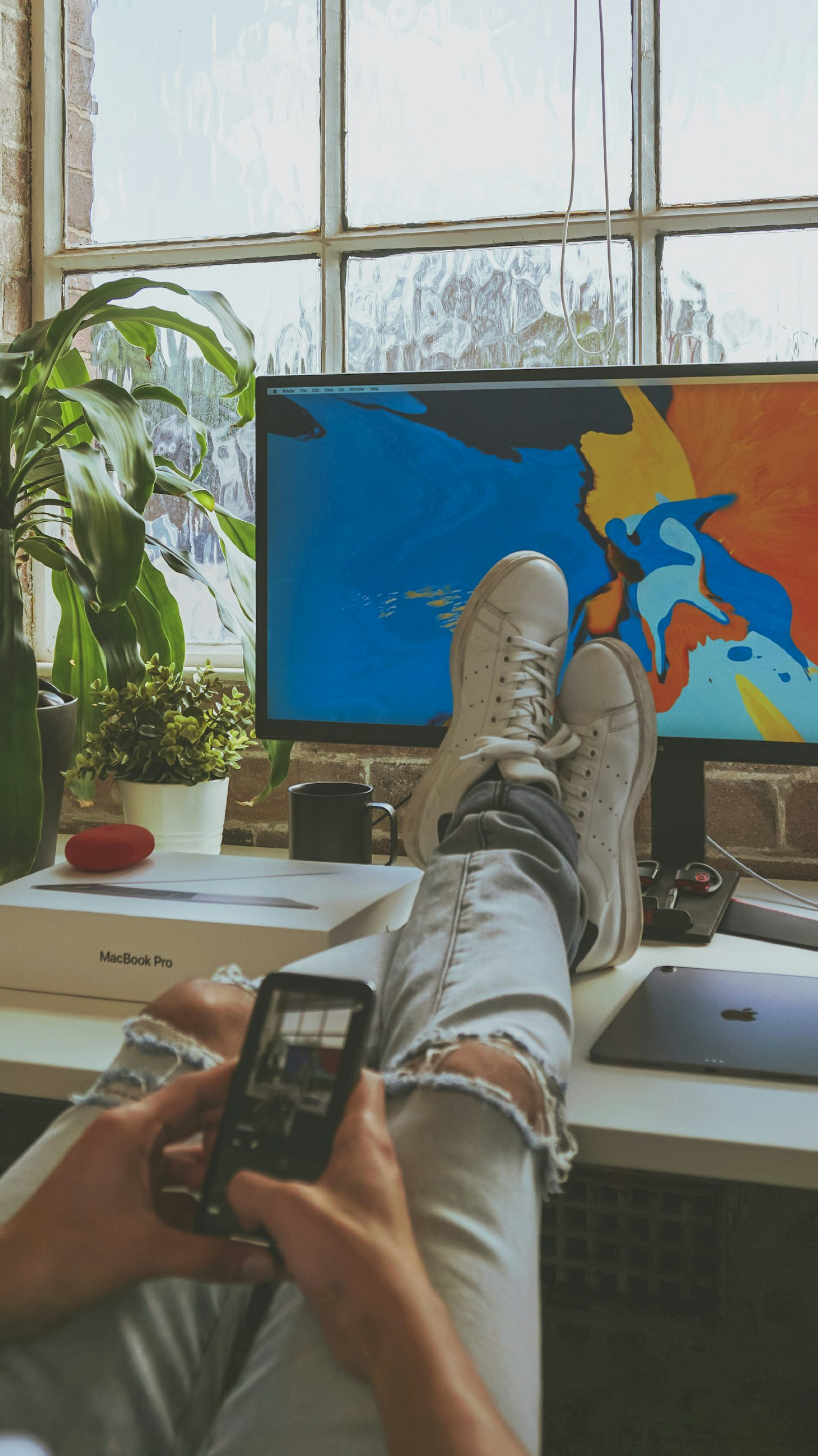 smartphone, phone, mobile phone, cell phone, desk, computer desk, workstation, feet, legs, resting, relaxing, comfortable, casual, technology, digital