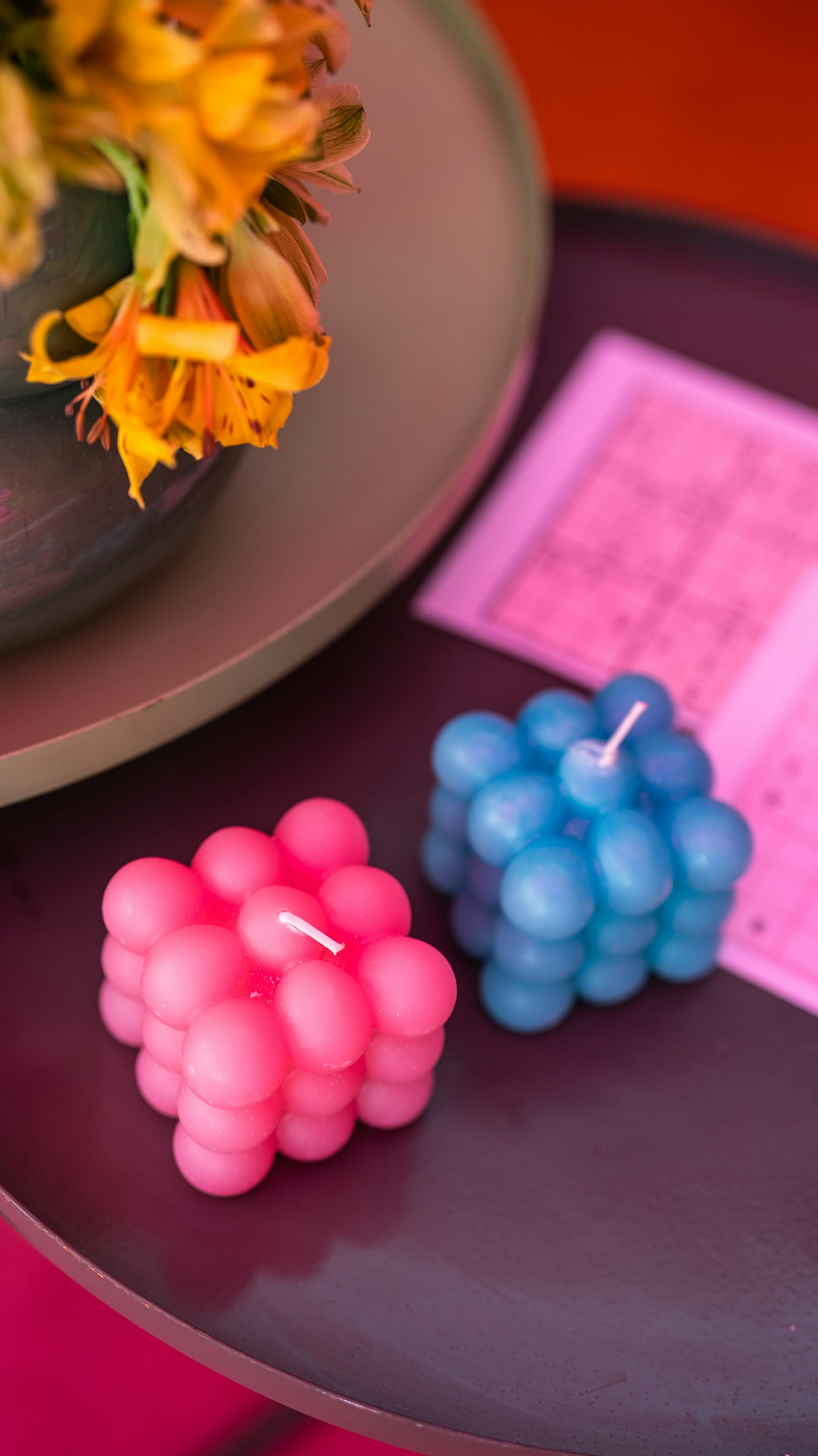 pink, blue, bubble candles, flowers, floral, candles, wallpaper, background, pastel, soft colors, romantic, calm, serene, decorative, aesthetic