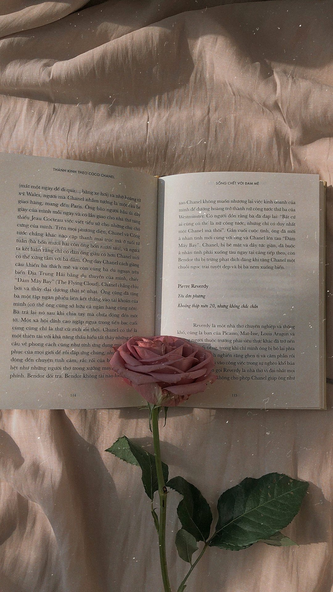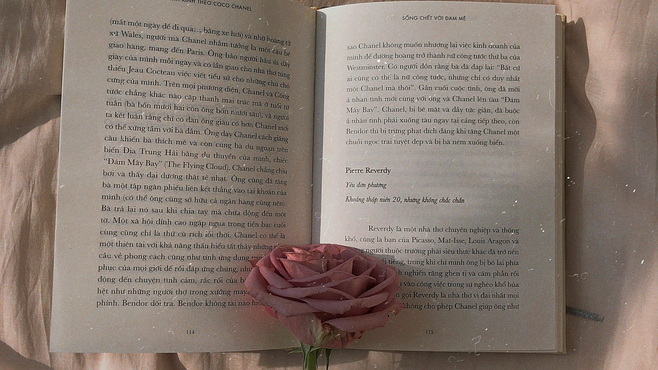 The delicate petals of the rose contrast beautifully with the aged texture of the book, creating a visually captivating scene. The soft pink hue of the flower adds a calming and serene atmosphere to the overall design.