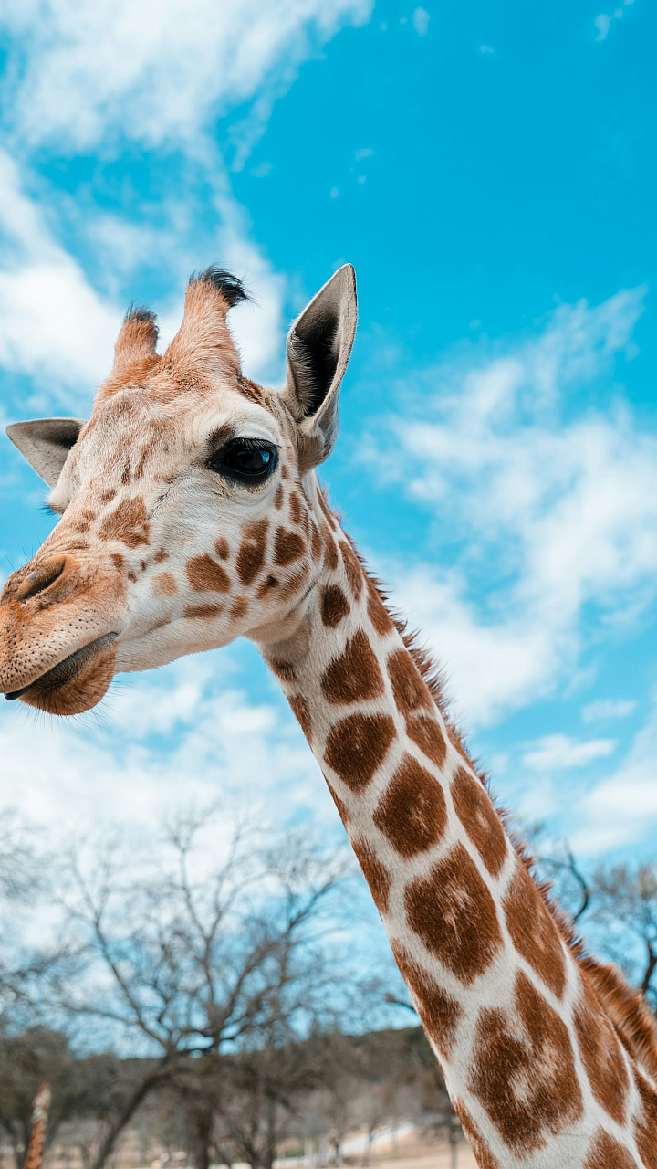 giraffe, portrait, animal, wildlife, mammal, african animal, savanna, long neck, spots, nature, wildlife photography, animal portrait, giraffe wallpaper, photography, background