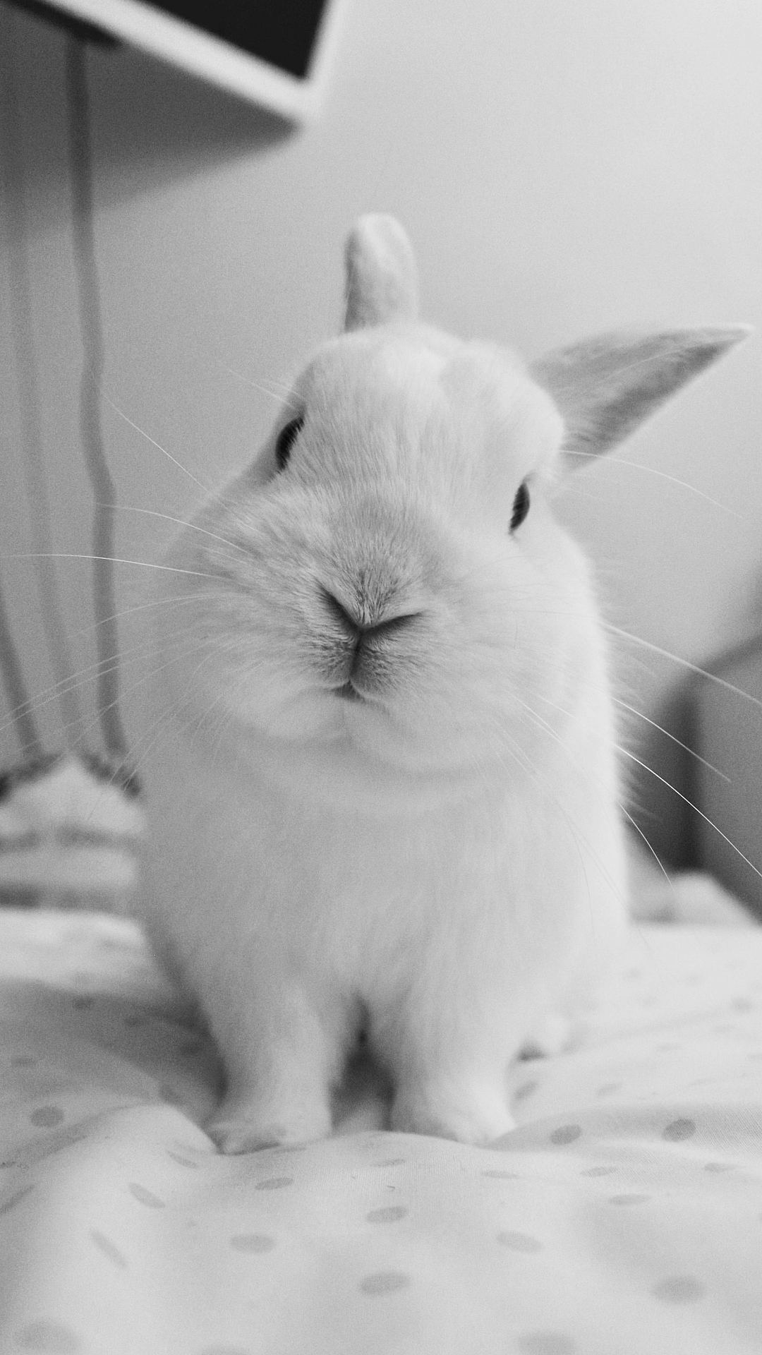 This wallpaper features a charming rabbit resting on a vibrant piece of polka-dot fabric. The image offers a delightful blend of textures and patterns, making it ideal for both desktop and mobile devices. The cute and adorable nature of the rabbit, combined with the playful polka dots, creates a whimsical and cheerful atmosphere.