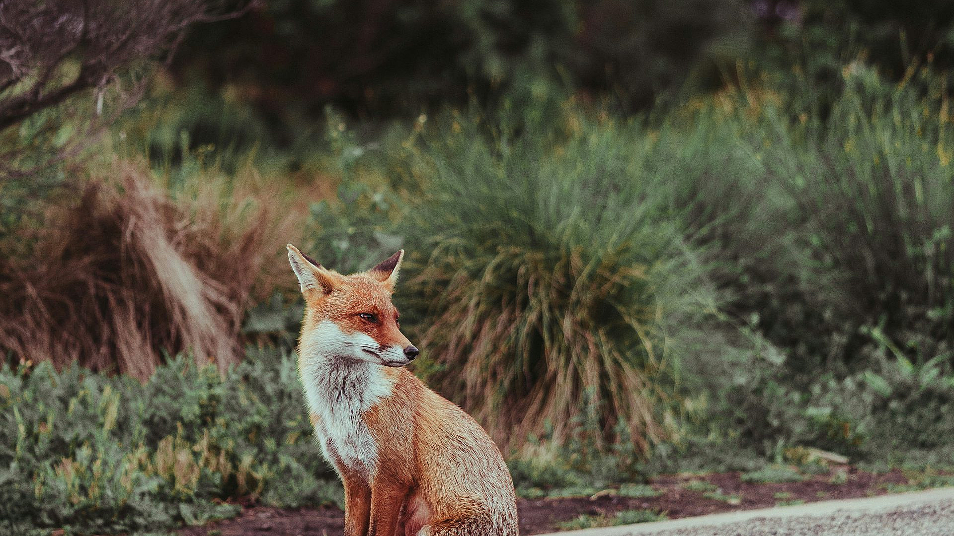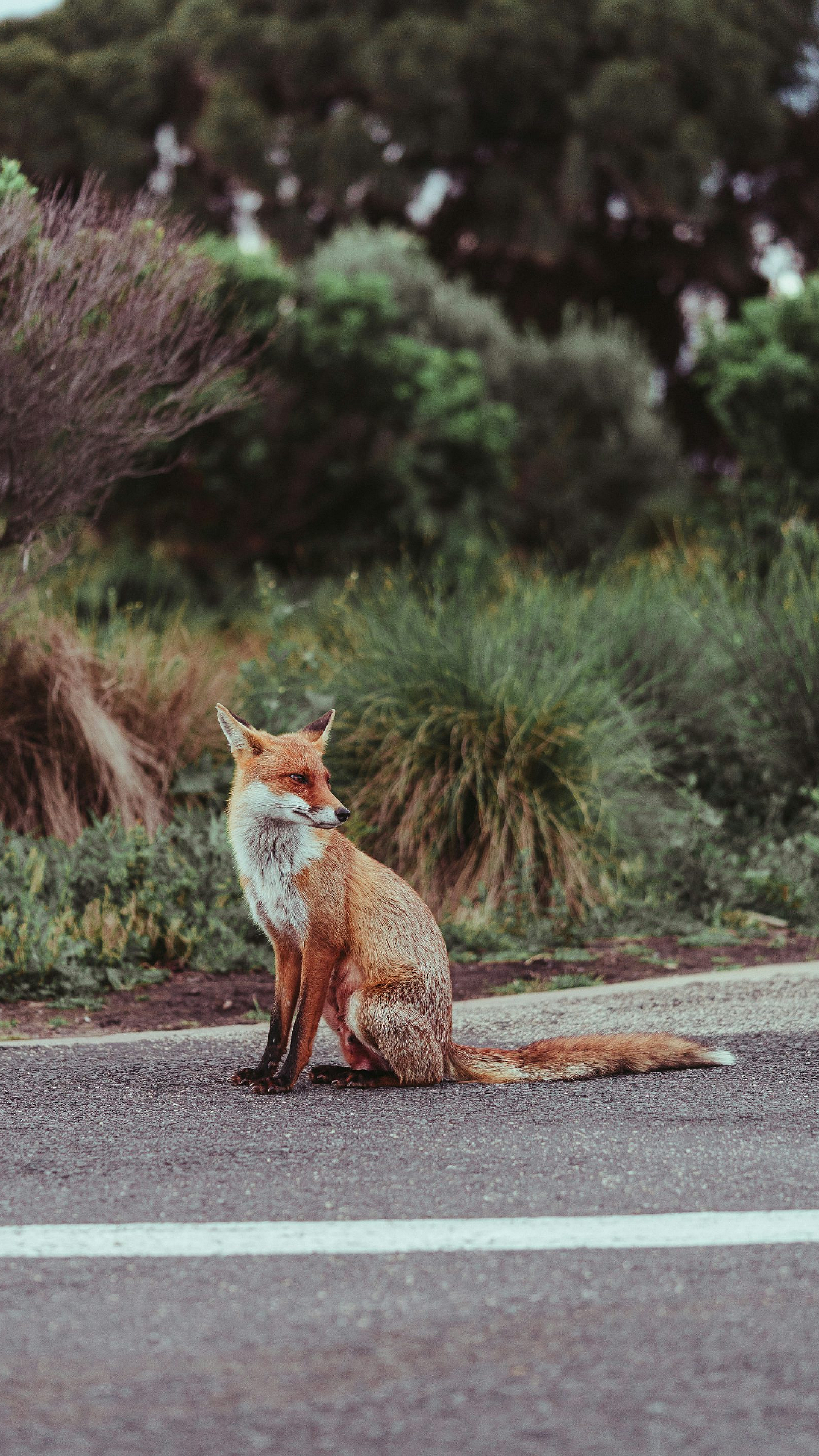 red fox, concrete road, fox wallpaper, animal wallpaper, wildlife wallpaper, nature wallpaper, roadside wildlife, urban wildlife, vulpes vulpes, fox on asphalt, wild animal photography, mammal wallpaper, canine wallpaper, road scene, pavement
