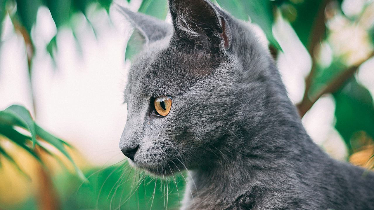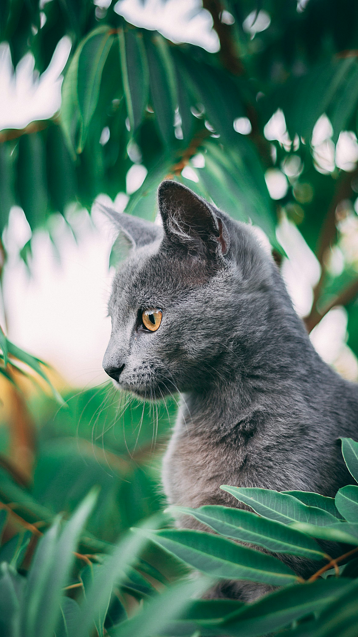 Russian Blue Cat, Green Grass, Cat Wallpaper, Outdoor Cat, Daytime, Sunlight, Nature, Grass Background, Feline, Blue Cat, Grey Cat, Pet, Animal, Mammal, Summer