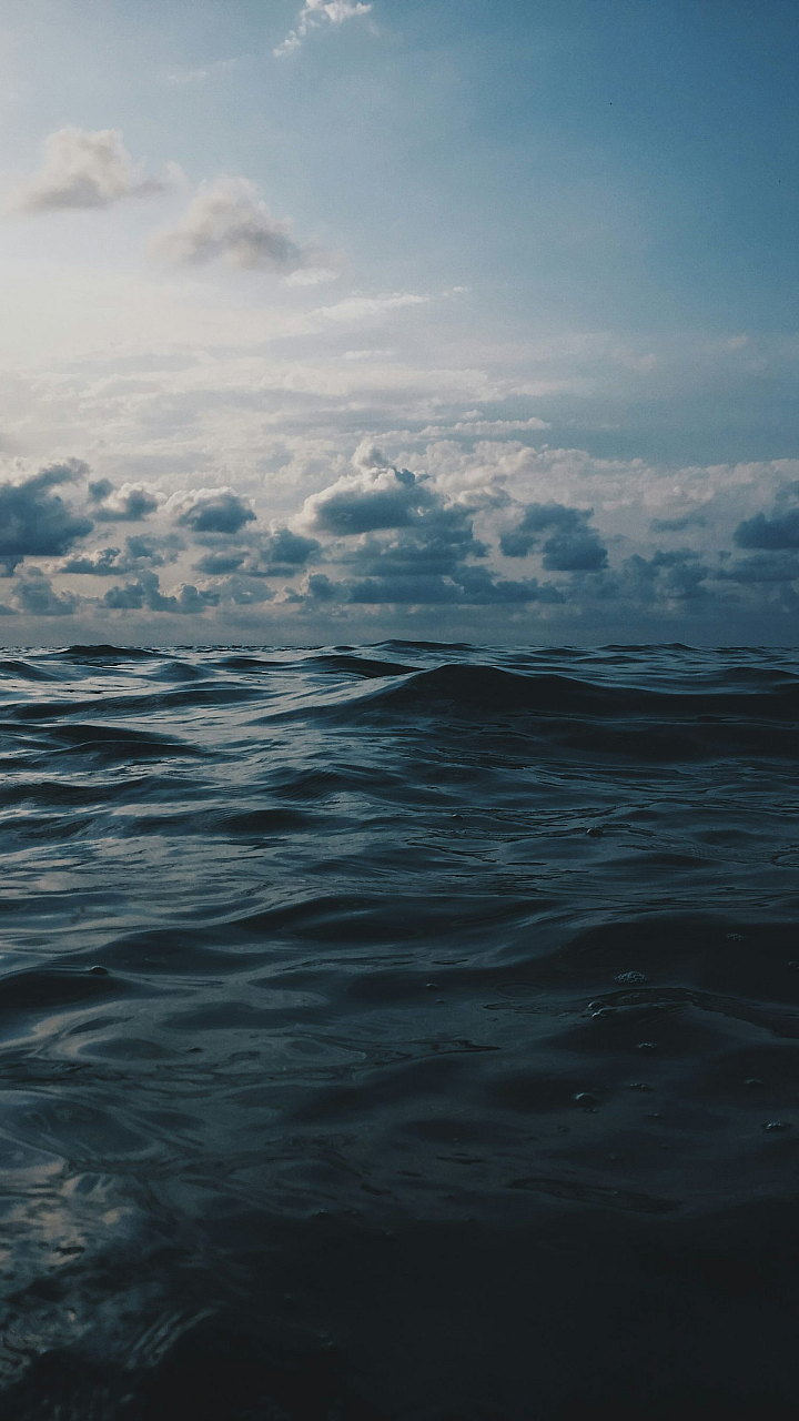 sea, ocean, clouds, white clouds, daytime, sky, water, blue, horizon, sunshine, sunny, bright, calm, serene, seascape