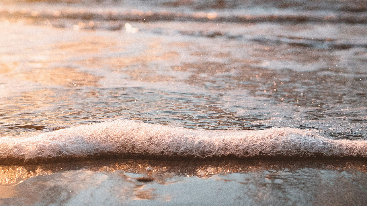 This wallpaper features a stunning selective focus photograph of water waves gently lapping onto a sandy beach. The image showcases the intricate texture of the sand and the delicate movement of the waves. The selective focus technique draws attention to the details of the water’s interaction with the shoreline, creating a visually appealing and peaceful scene perfect for your desktop or mobile background.