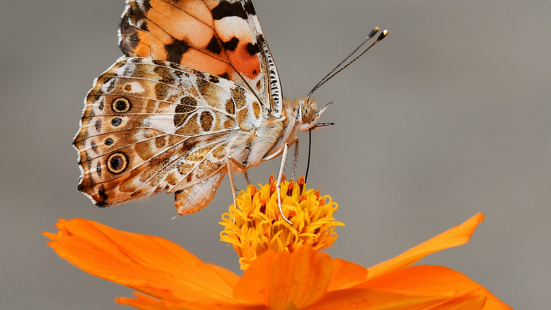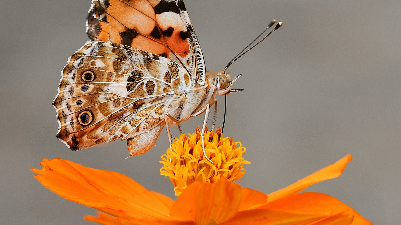 butterfly, flower, orange flower, selective focus, macro photography, insect, nature, wildlife, closeup, detail, petal, wings, blossom, bloom, photography
