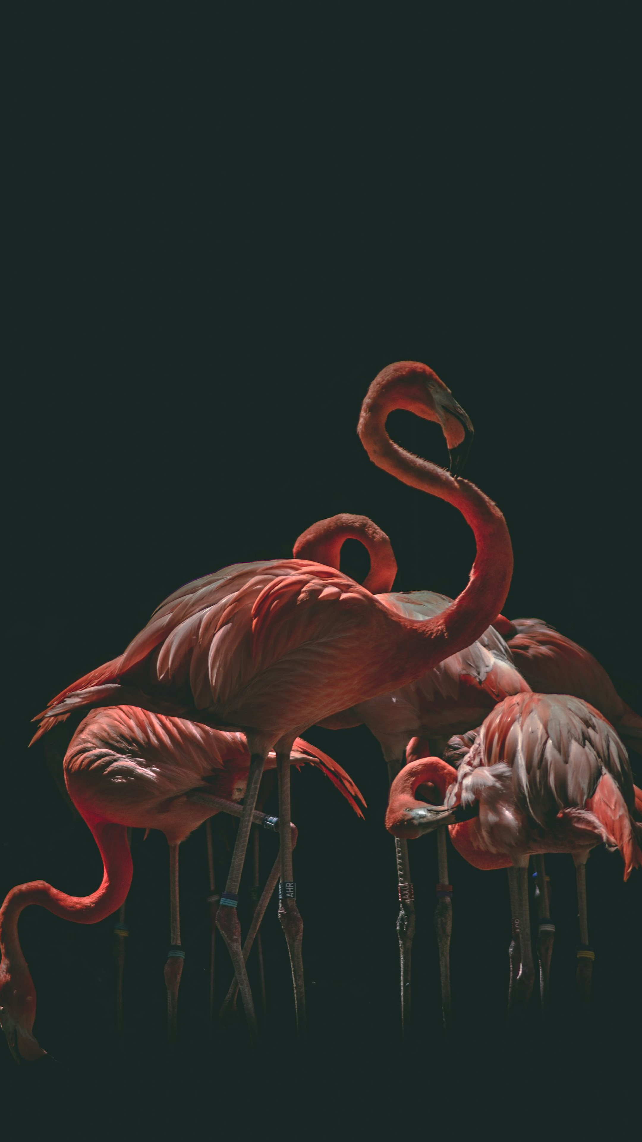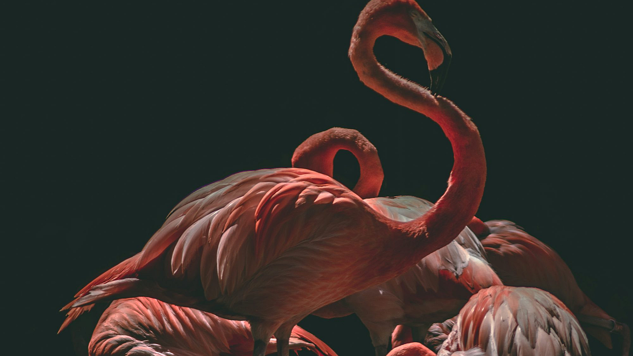 pink flamingos, flamingos, birds, avian, pink, rose, magenta, lighting, rim light, illumination, room, interior, wallpaper, background, tropical, exotic