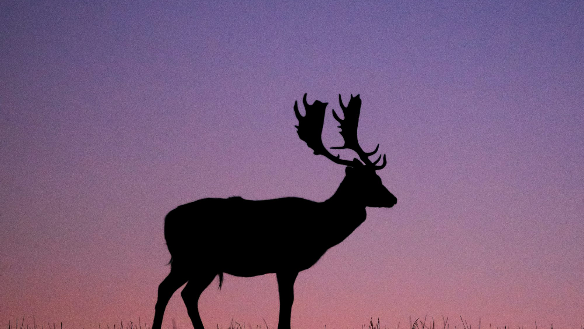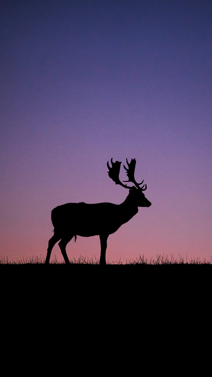 This stunning wallpaper features a silhouette of a deer standing gracefully in a grass field as the sunset paints the sky with vibrant colors. The golden hour light creates a dramatic and peaceful atmosphere. The image perfectly captures the beauty of wildlife in its natural habitat, offering a serene and captivating scene for your desktop or mobile background.