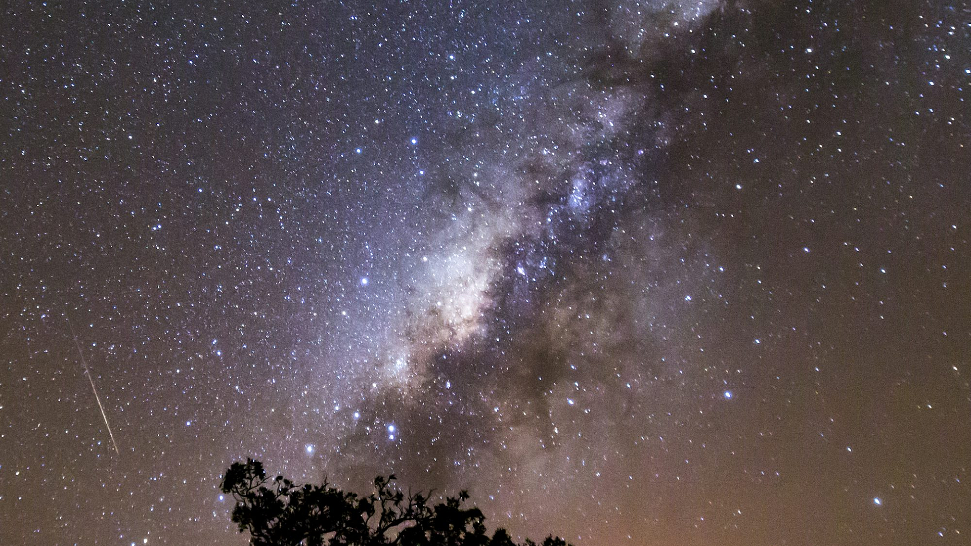This stunning wallpaper features a silhouette of a tree set against the breathtaking backdrop of the Milky Way galaxy. The dark silhouette of the tree contrasts beautifully with the vibrant stars and cosmic dust of the night sky, creating an ethereal and captivating image.