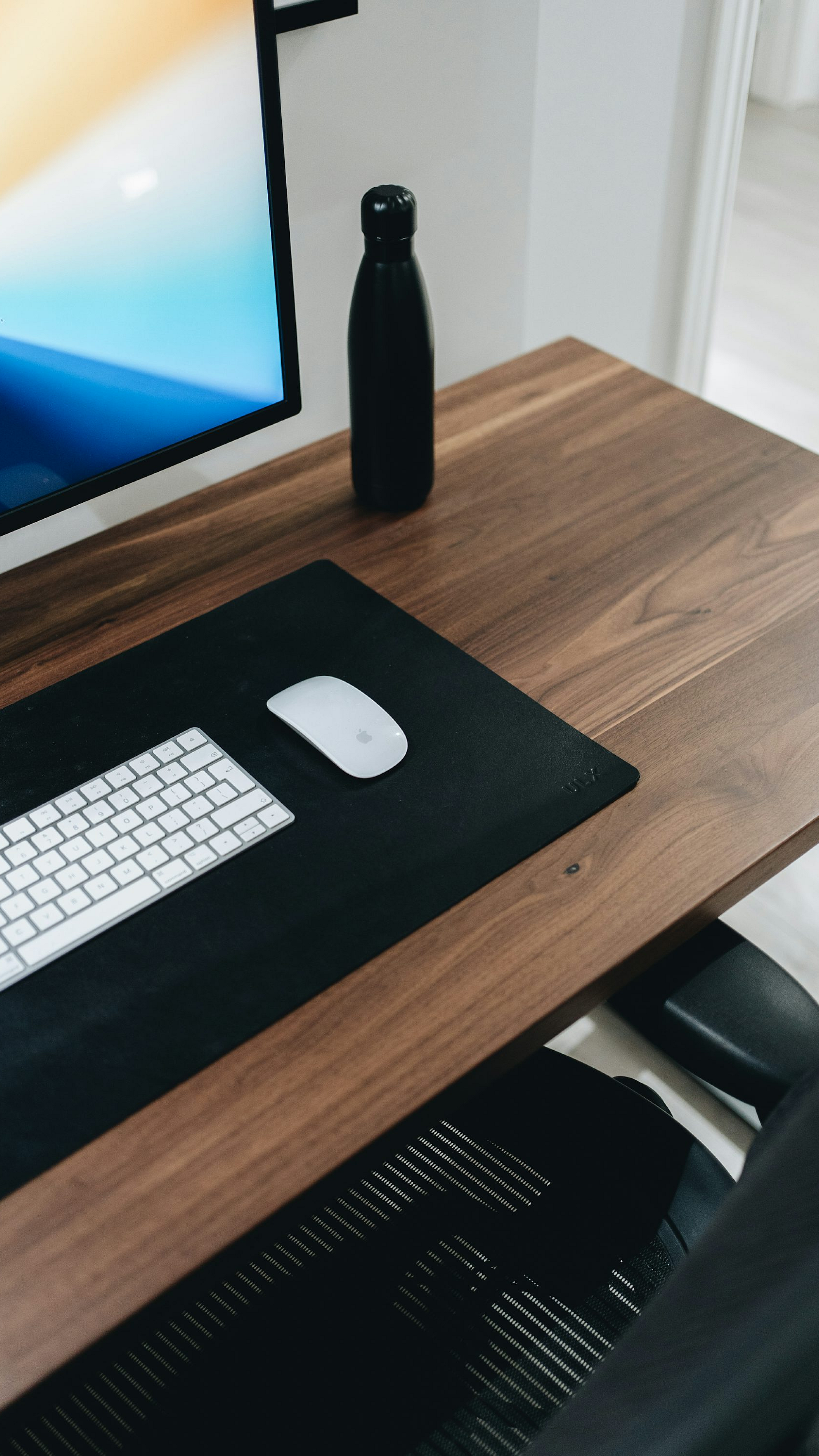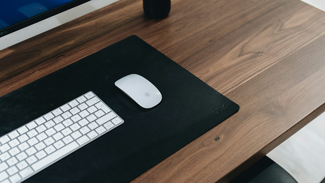 silver apple keyboard on brown wooden desk