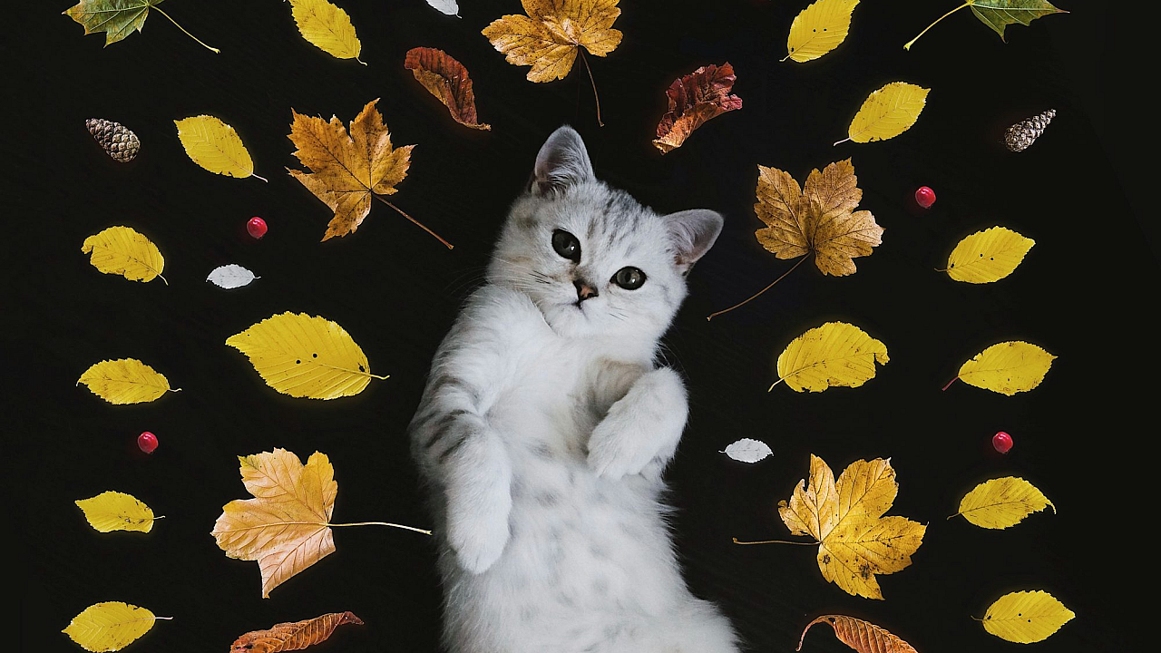 silver tabby cat, leaves, foliage, greenery, cat wallpaper, feline wallpaper, pet wallpaper, animal wallpaper, nature wallpaper, autumn wallpaper, spring wallpaper, grey cat, striped cat, tabby cat, cat amongst leaves, pet photography