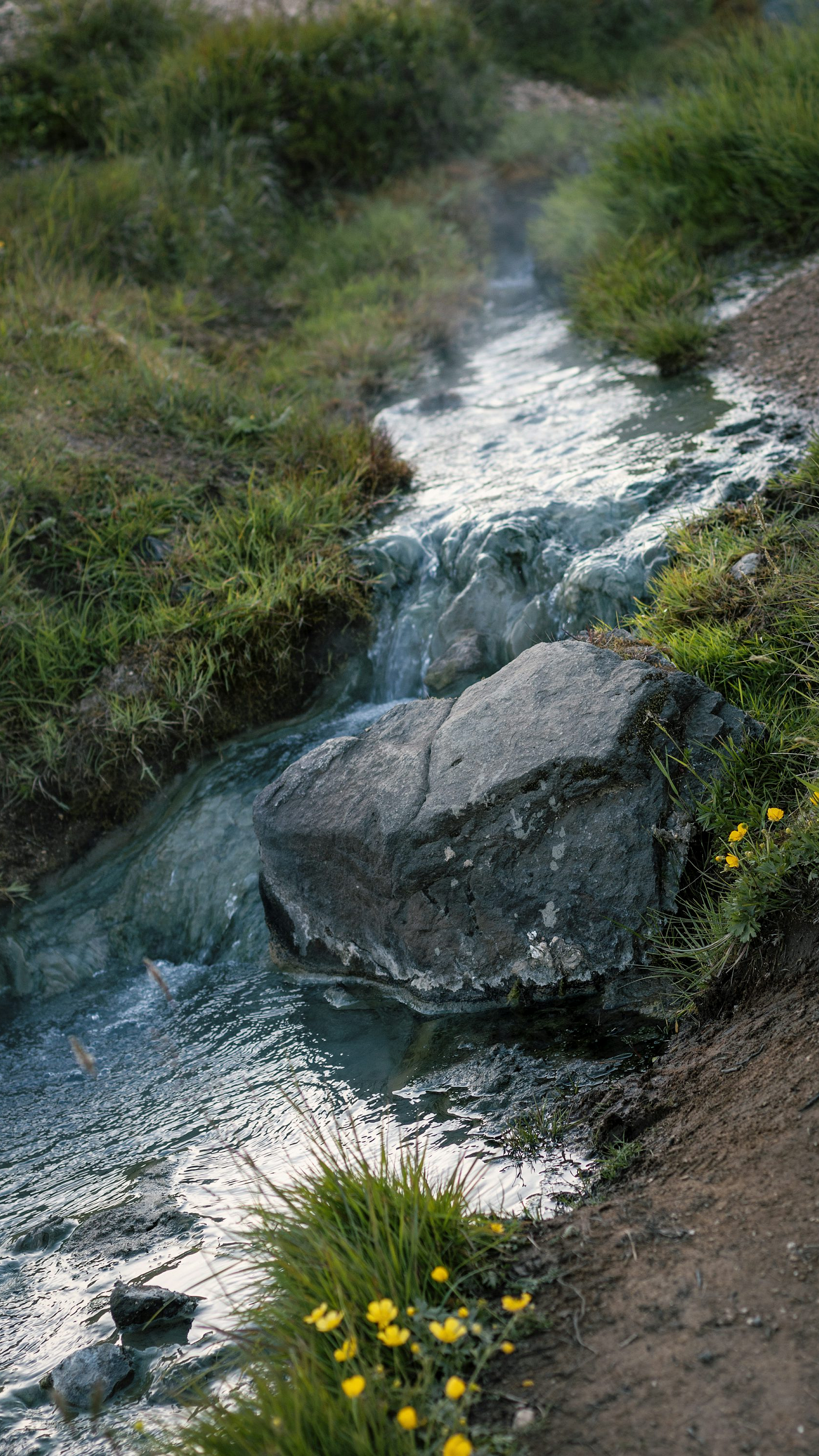 The image is perfect for those who appreciate the serenity of nature and the beauty of simple things. The contrast between the hard stone and the flowing water creates a visually appealing scene. The bright daytime lighting enhances the overall clarity and vibrancy.