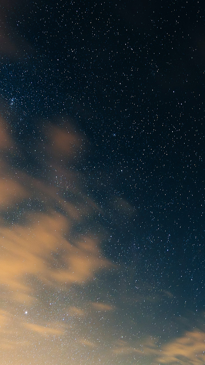This wallpaper features a breathtaking view of the night sky, adorned with countless twinkling stars and ethereal clouds. The image captures the serene beauty of the cosmos, perfect for anyone who appreciates the wonders of the universe. The subtle interplay of light and shadow creates a mesmerizing effect, offering a peaceful and calming ambiance to your desktop or mobile device.