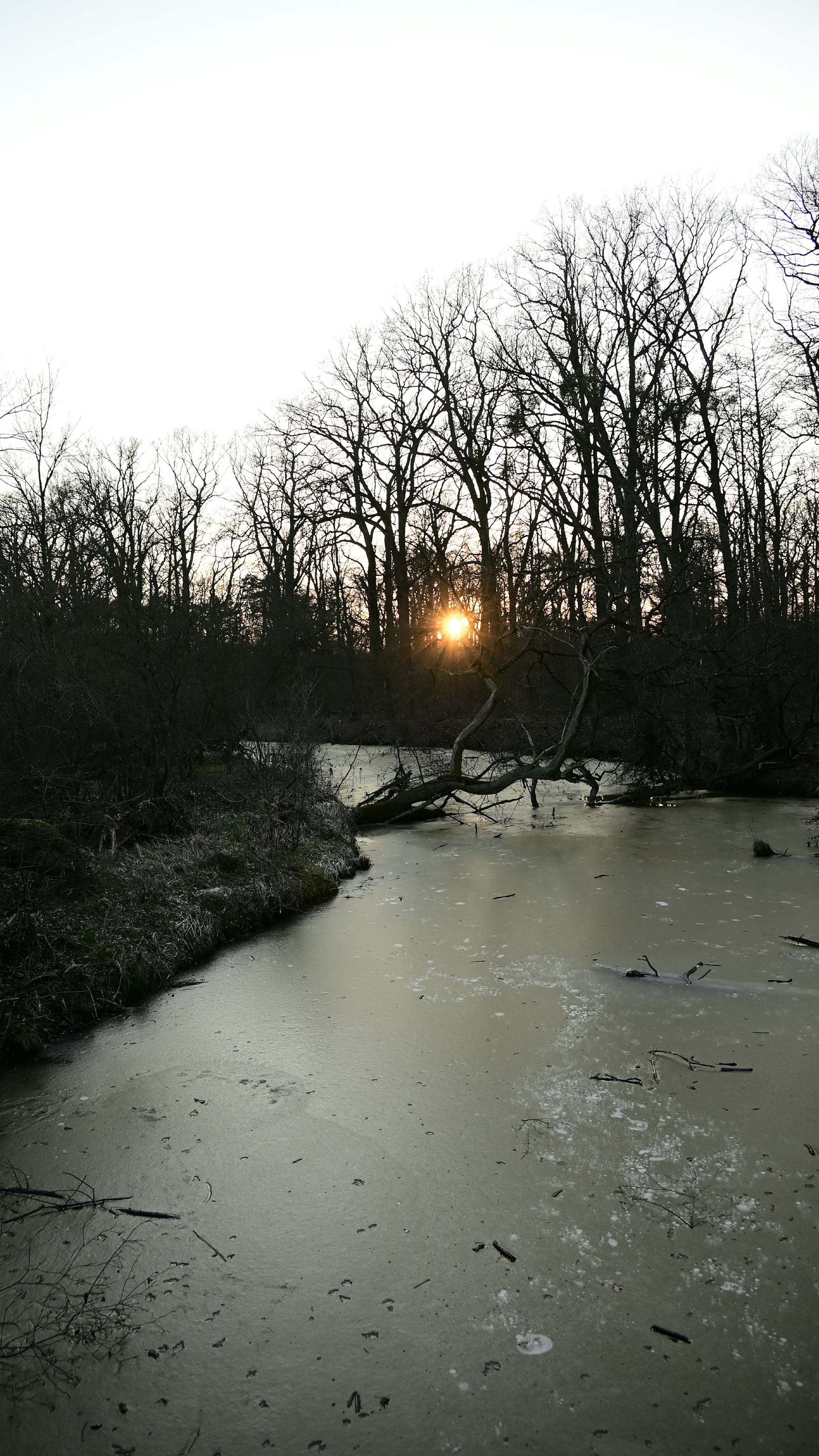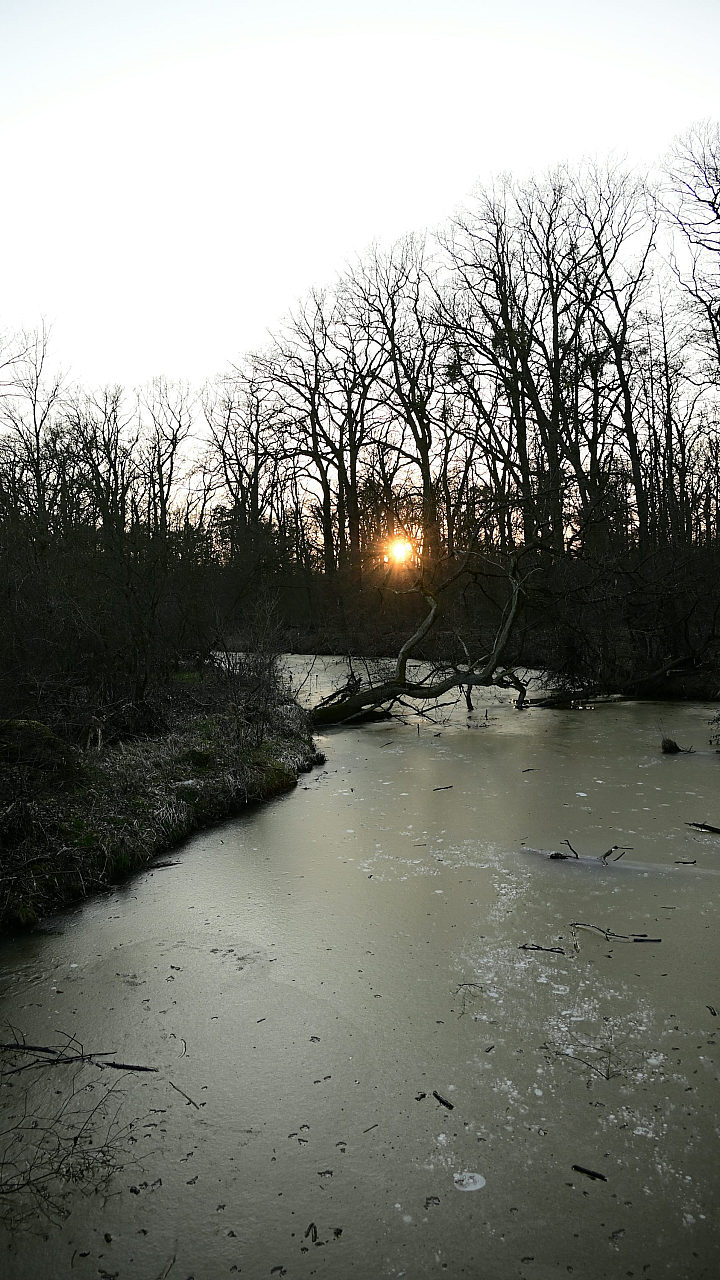 Keywords: frozen river, sunset, winter, ice, cold, landscape, nature, scenery, serene, peaceful, tranquil, beautiful, frozen water, sun, setting sun