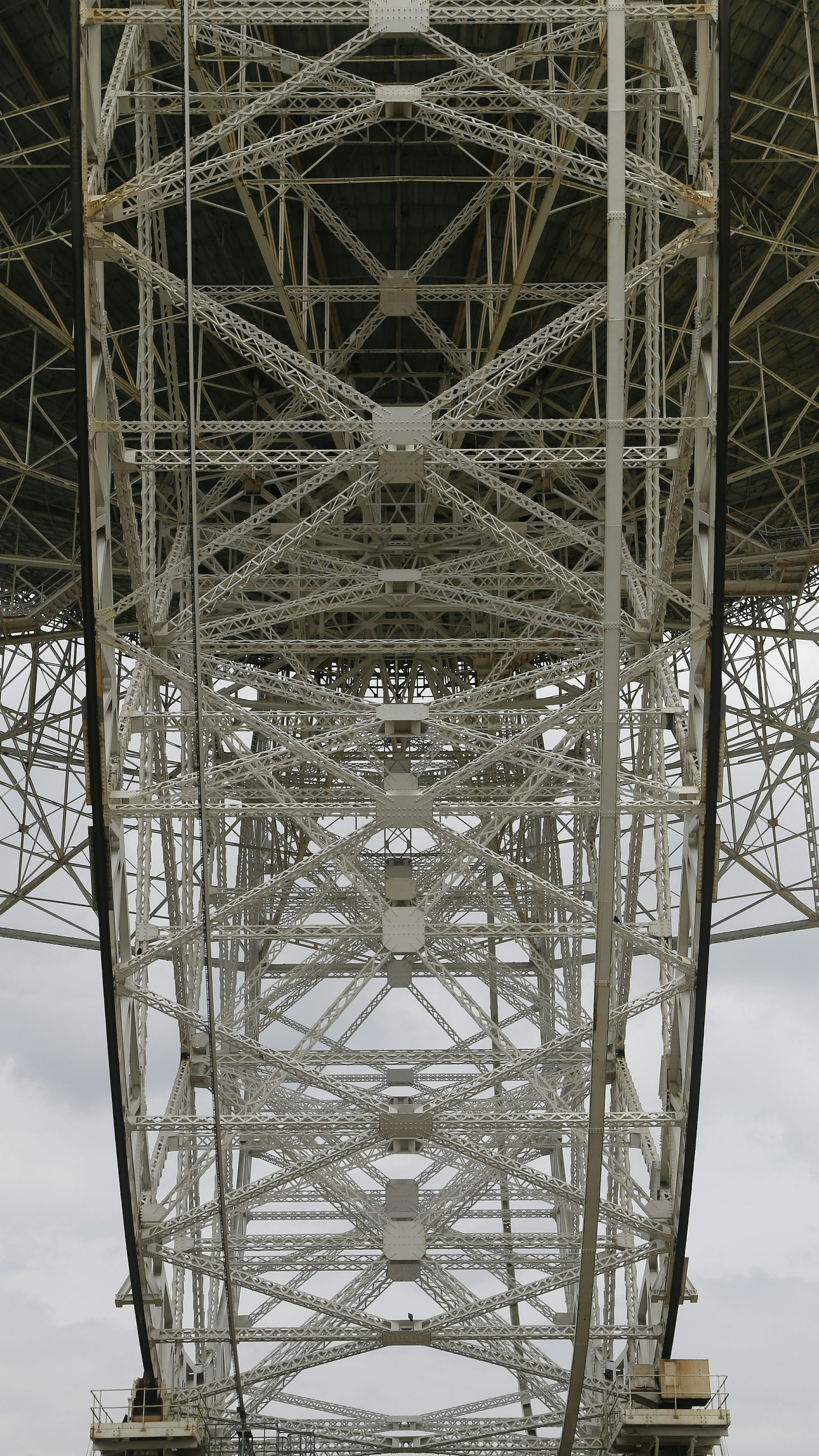 The image is ideal for those who appreciate industrial design, architecture, or simply striking visuals. The contrast between the metallic structure and the grey sky creates a captivating visual texture. The photograph highlights the scale and infrastructure of the construction, emphasizing the strength and stability implied by the design. The image is perfect for use as a desktop background, phone wallpaper, or any other application where a powerful and atmospheric image is desired.