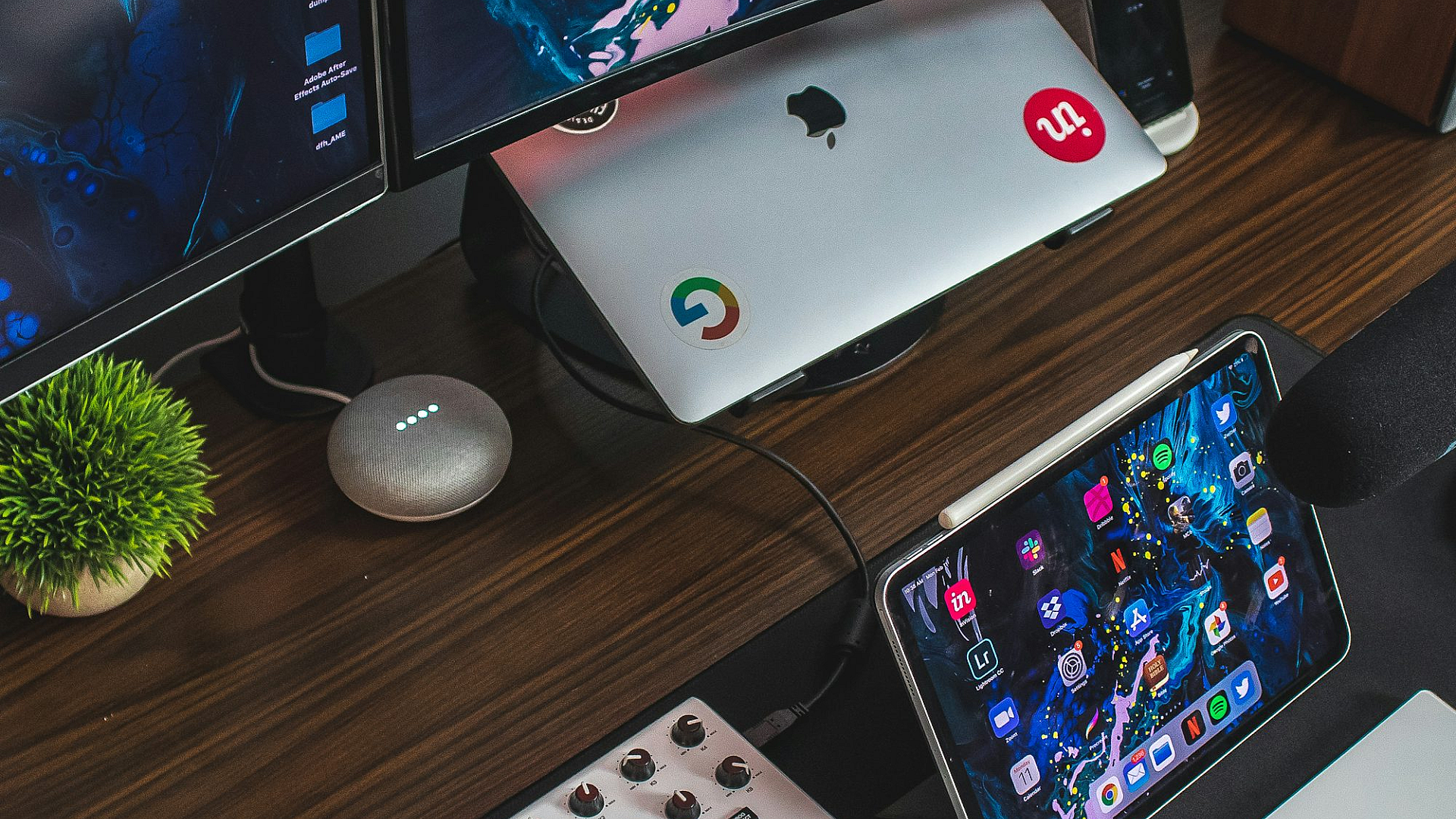 The contrast between the sleek surfaces of the technology and the clean background makes this wallpaper very versatile. It works well on desktops, laptops, tablets, and smartphones, bringing a touch of elegance and professionalism to any device.