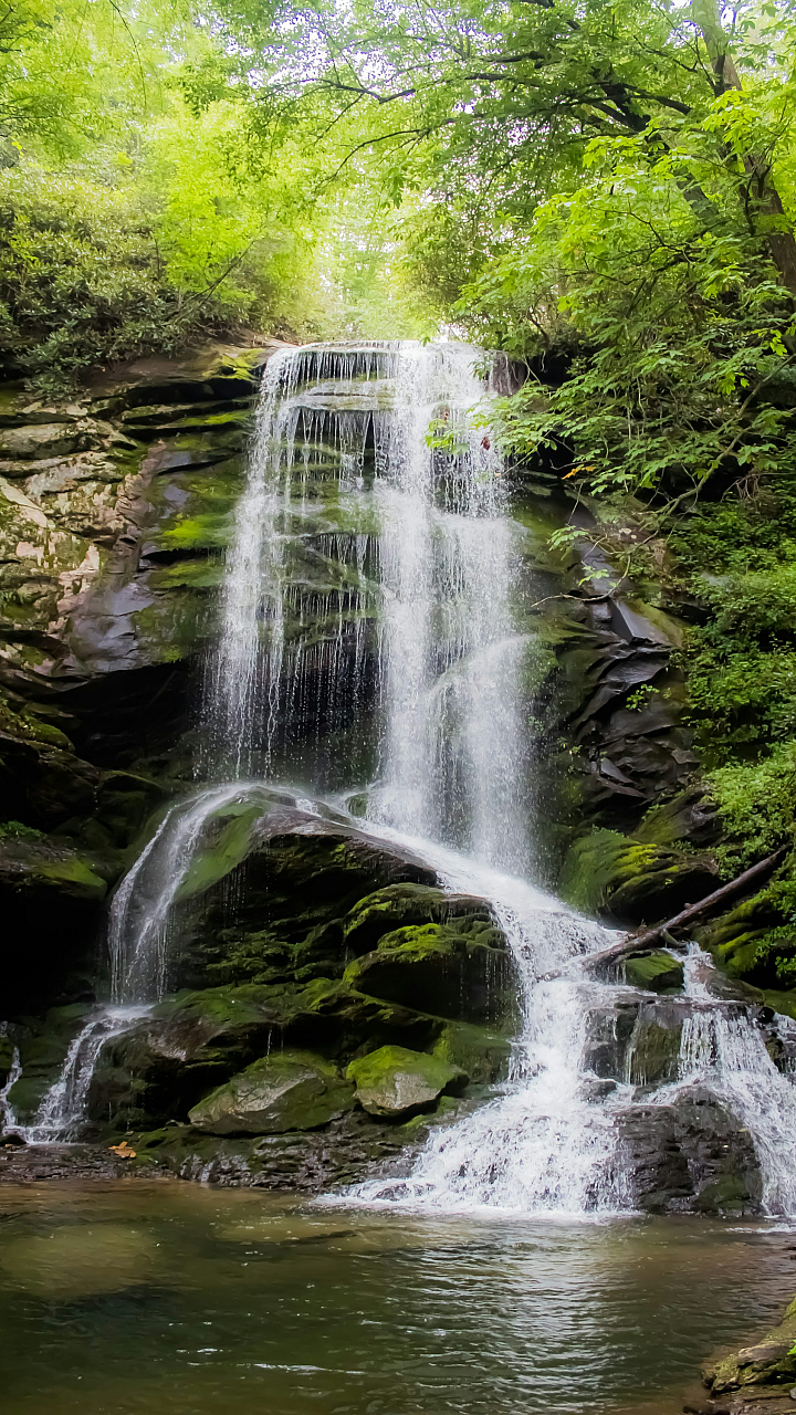 waterfalls, green trees, nature, landscape, scenery, forest, cascade, river, stream, woods, lush, vegetation, flowing water, tranquil, serene