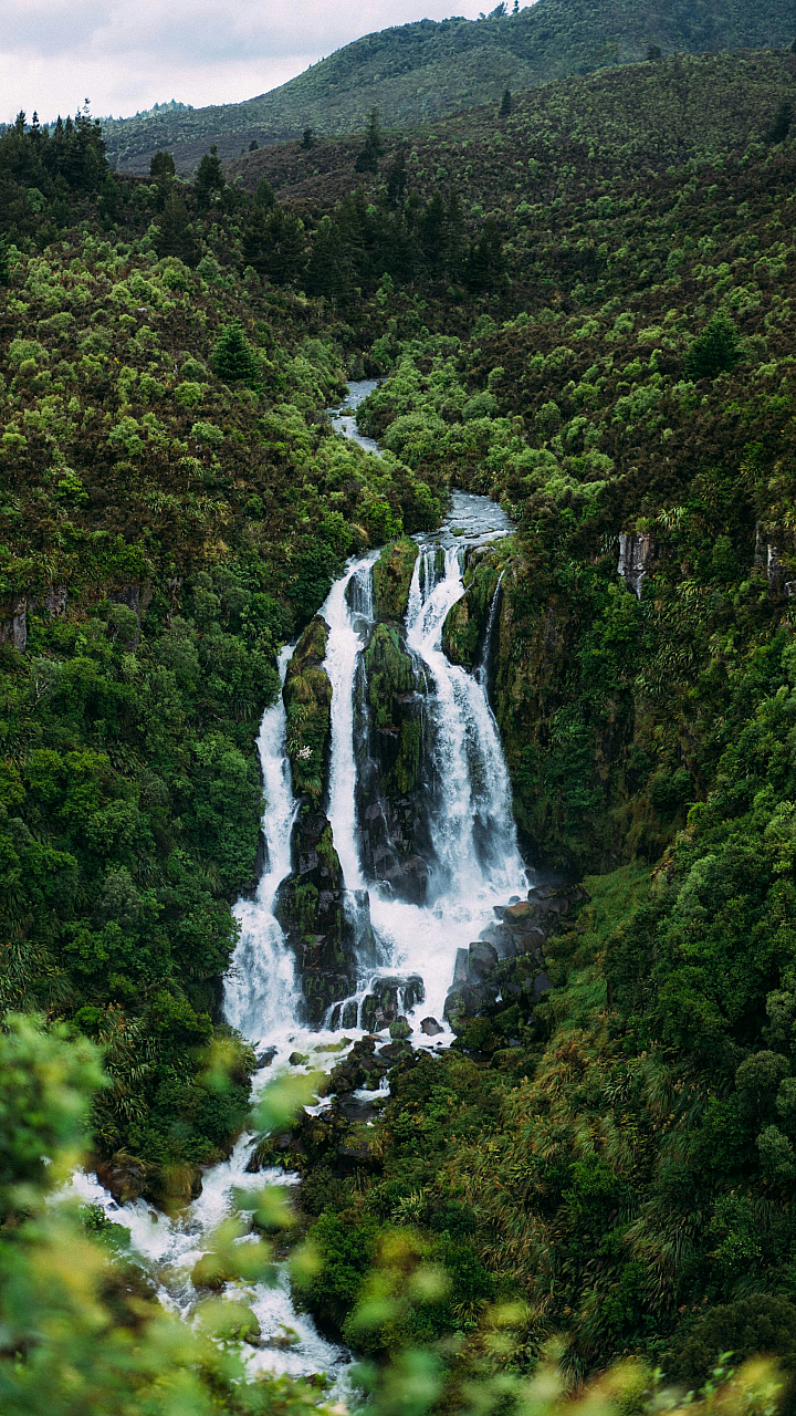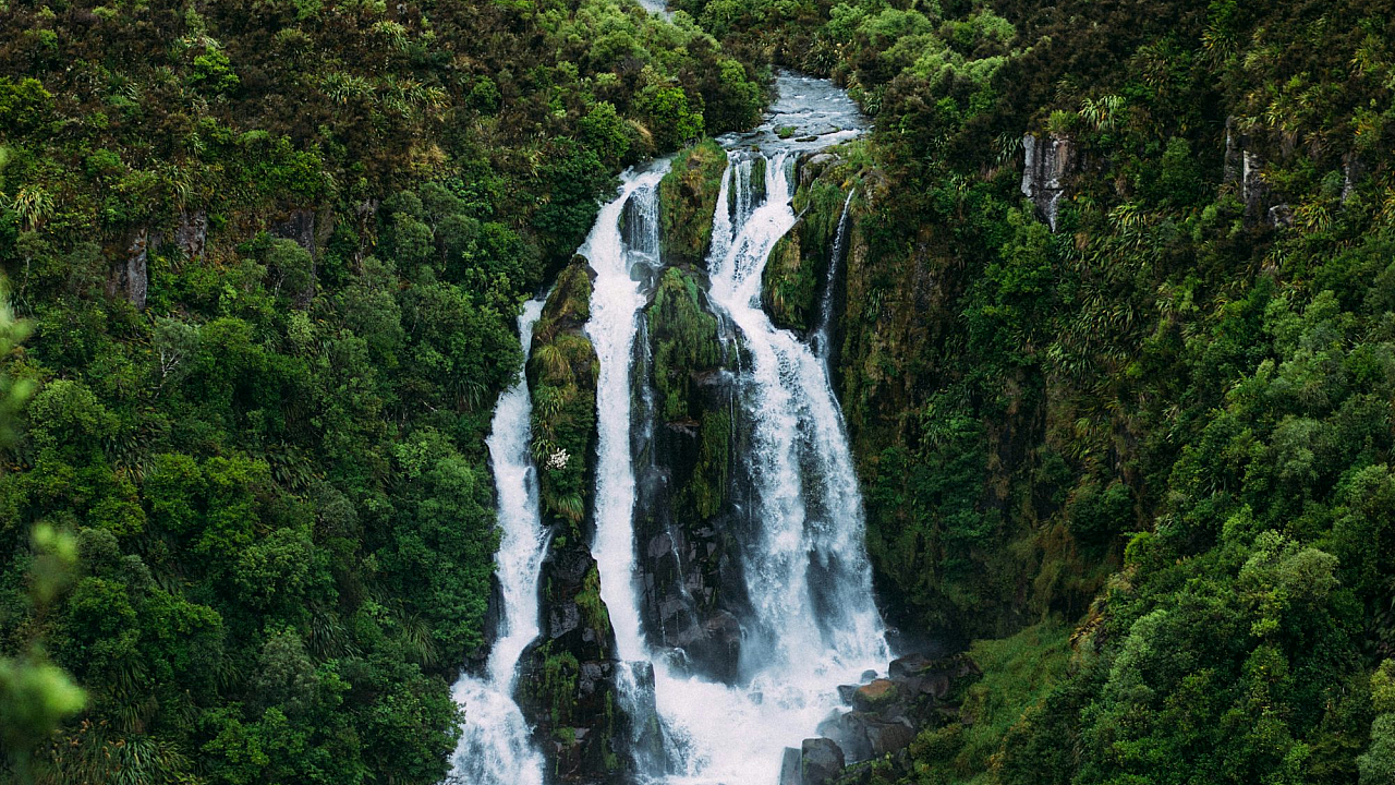 Waterfalls, Green Trees, Forest, Nature, Landscape, Scenery, Cascading Water, Jungle, Woods, Serenity, Tranquility, Peaceful, Outdoor, Summer, Background