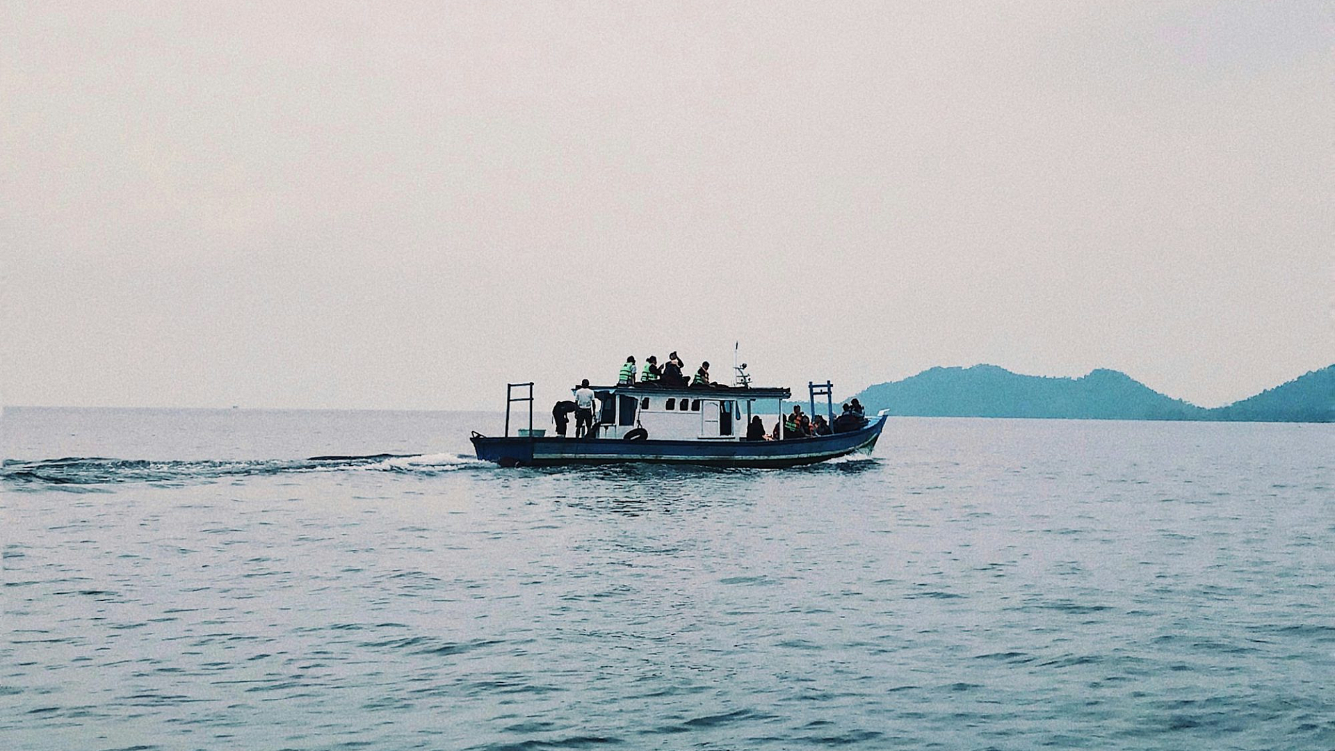 Wallpaper A Boat on the Water Near a Beach