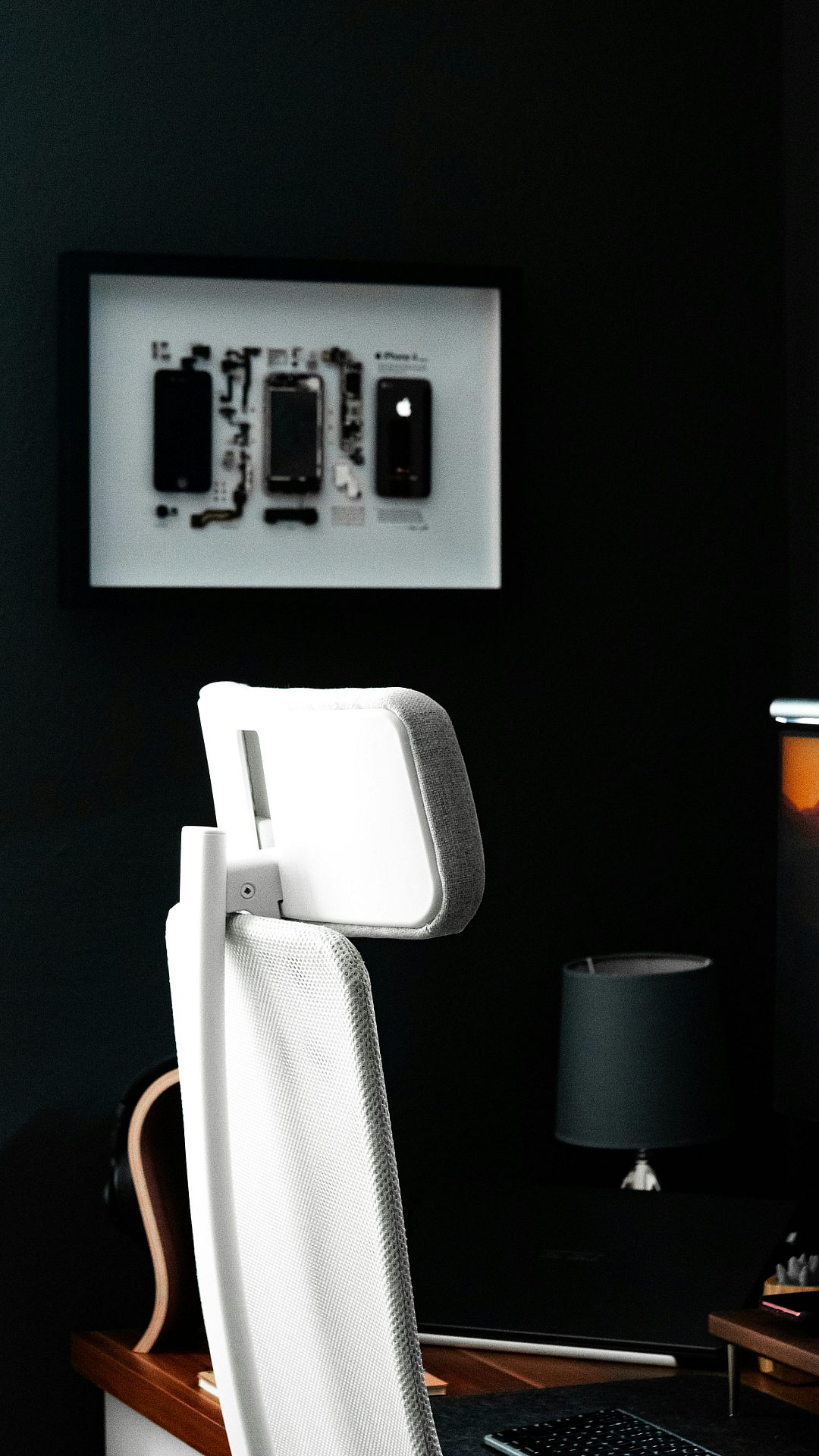 The stark contrast between the white and black elements creates a feeling of sophistication and modernity. This image is a perfect blend of abstract art and practical background design. Enjoy this stunning representation of electronic device imagery.