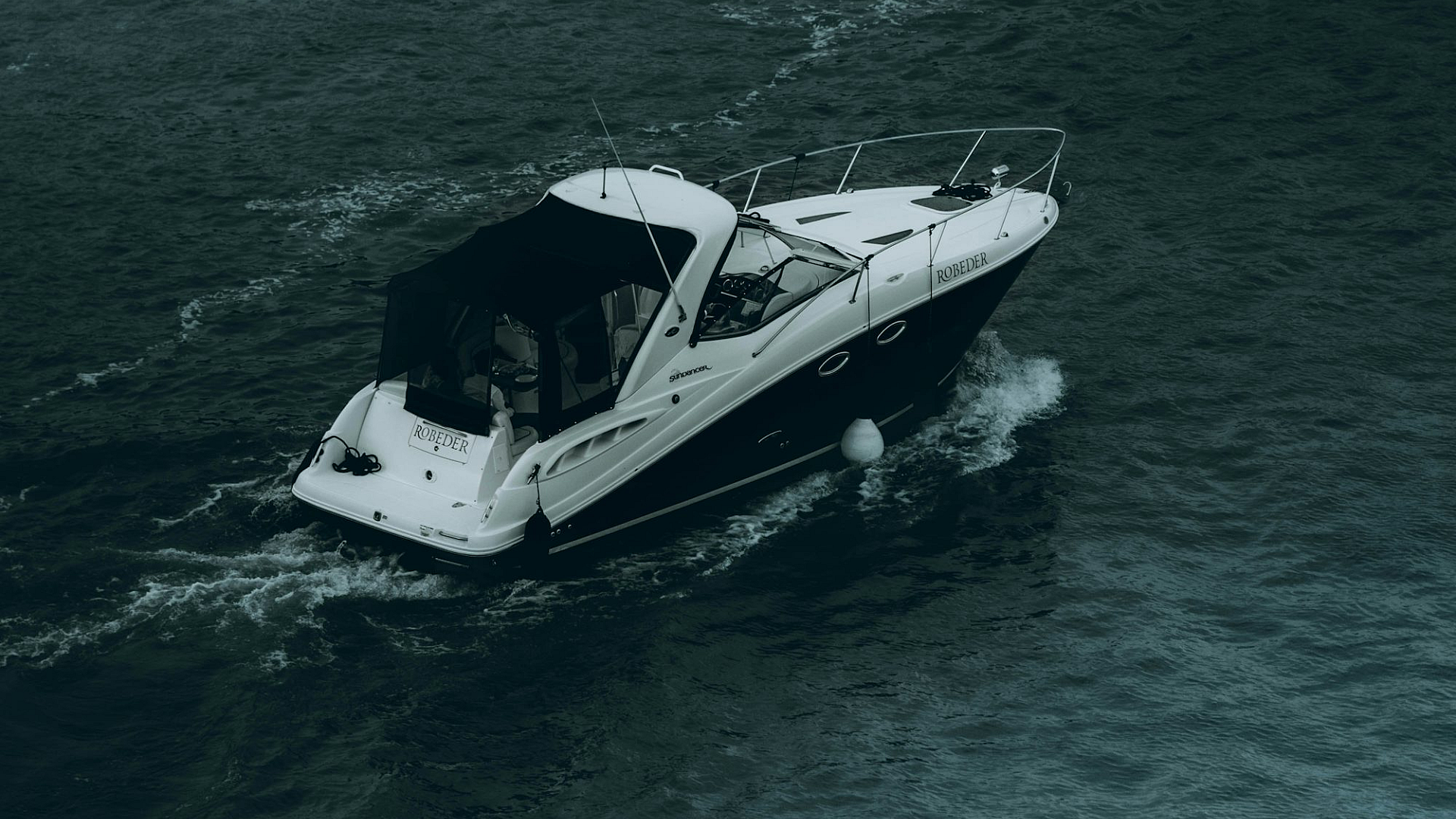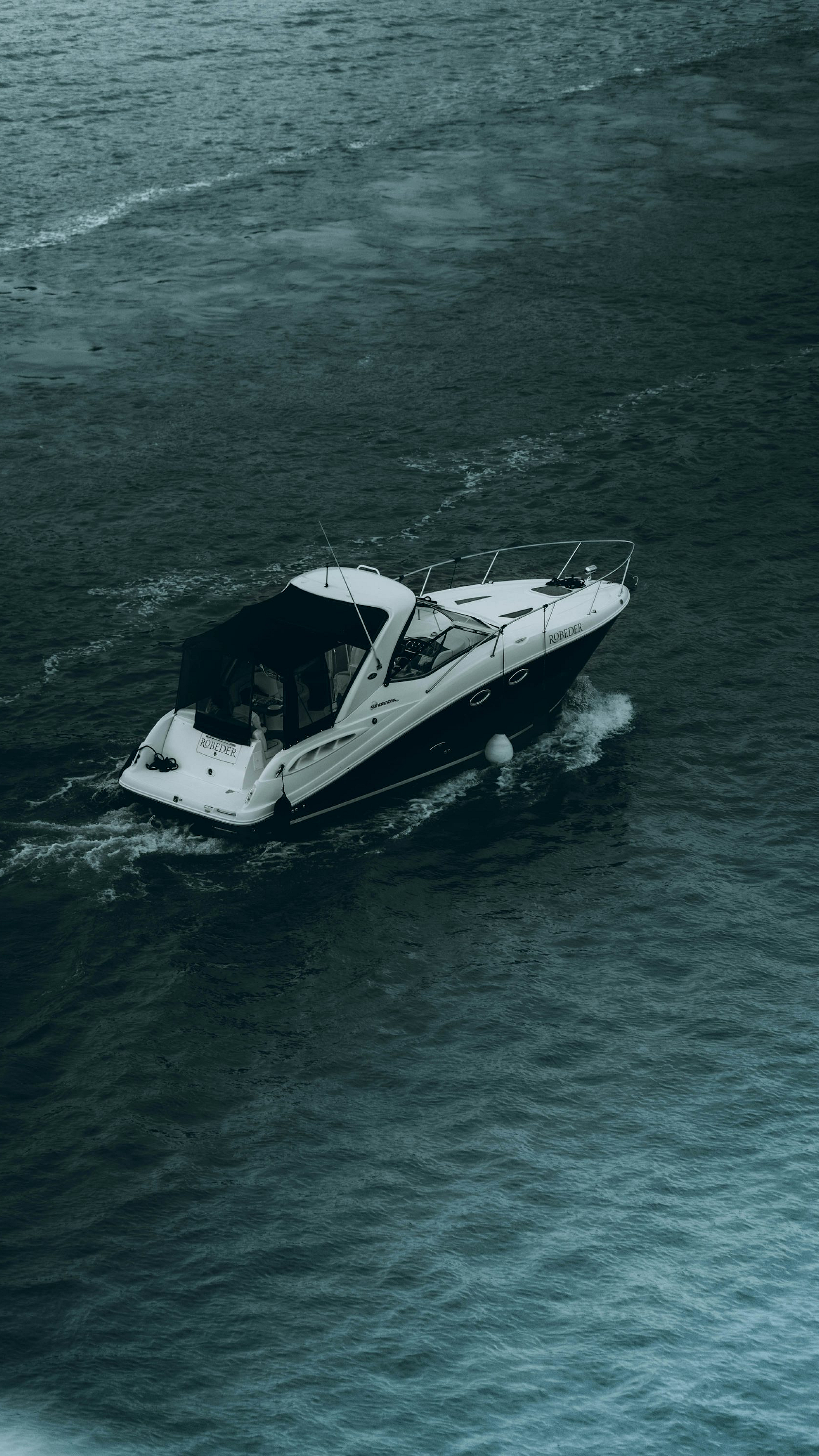 This stunning wallpaper features a white and black yacht gracefully gliding across the sea under the bright daytime sun. The monochrome color scheme creates a striking contrast against the deep blue water, offering a sophisticated and elegant aesthetic. The image is perfect for anyone who appreciates luxury, nautical themes, or simply beautiful marine scenery.