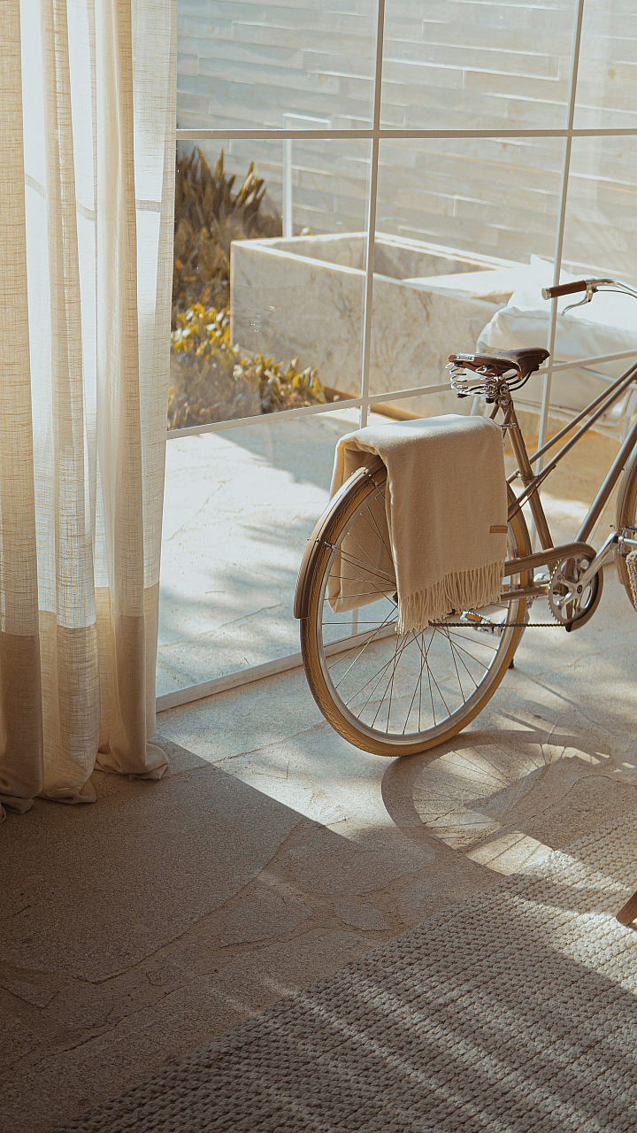 white bike, glass wall, modern, minimalist, bicycle, cycle, reflective, urban, architecture, building, window, exterior, clean, simple, contemporary