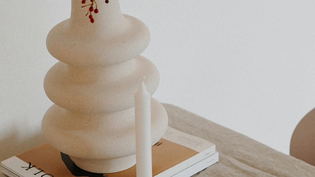 Keywords: white ceramic vase, white book, minimalist wallpaper, simple wallpaper, clean wallpaper, modern wallpaper, vase, book, white background, ceramic, still life, home decor, interior design, minimalism, monochrome