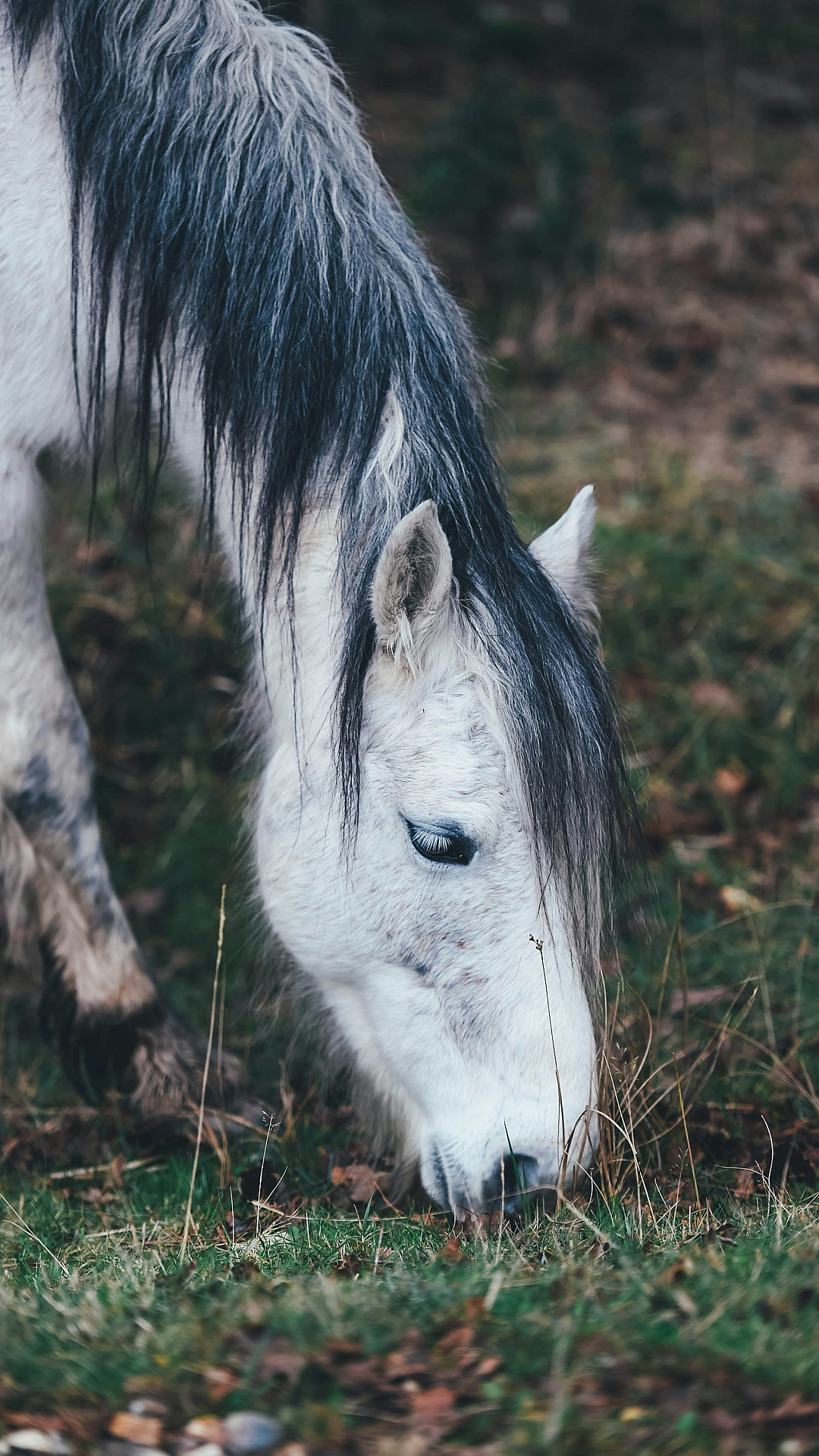 white horse, grazing, grass, selective focus, photography, equine, pasture, meadow, field, animal, nature, wildlife, rural, countryside, horse wallpaper, herbivore